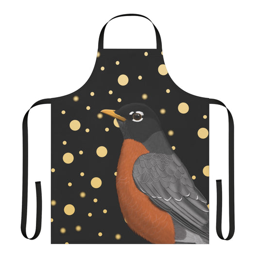 Robin Golden Dots Birdlover Bird Art Apron Black