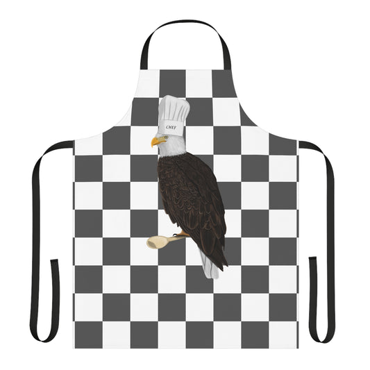 Bald Eagle Kitchen Chef Bird Art Apron Grey and White Checkered