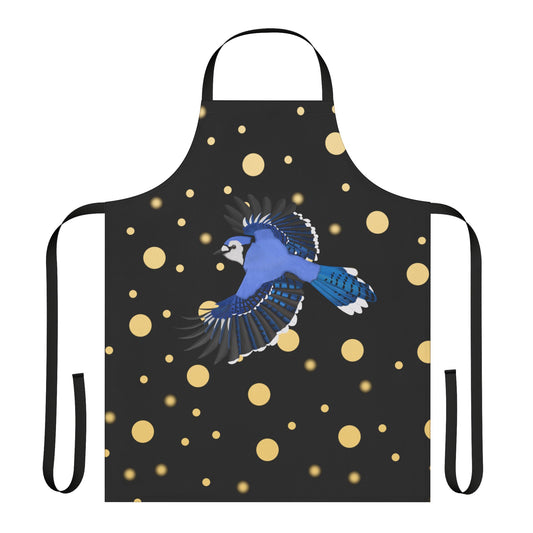 Blue Jay Golden Dots Birdlover Bird Art Apron Black