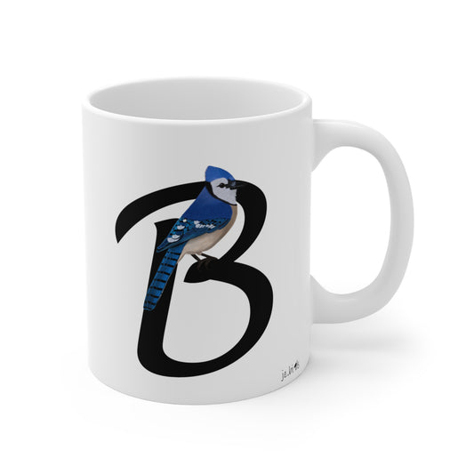 Blue Jay Letter B Bird Ceramic Mug 11oz White