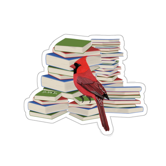 Cardinal Bird and Books Birdlover Bookworm Sticker