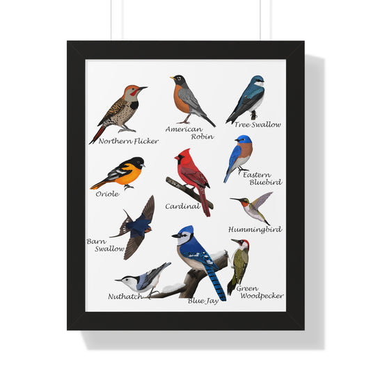 Backyard Birds Blue Jay Robin Cardinal Nuthatch Oriole Framed Poster