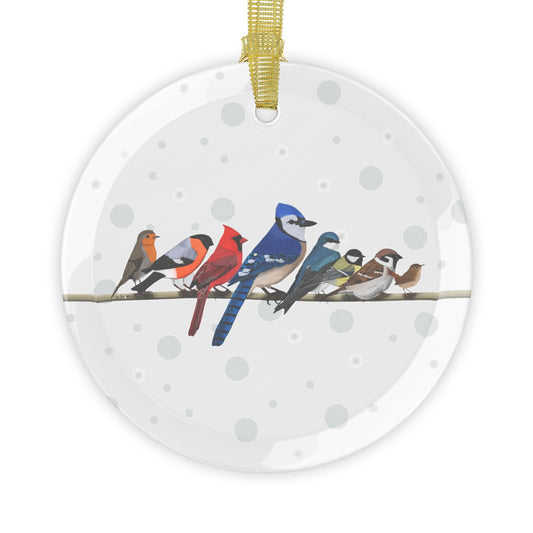 Blue Jay Cardinal Bullfinch Chickadee Bird Christmas Glass Ornament Transparent