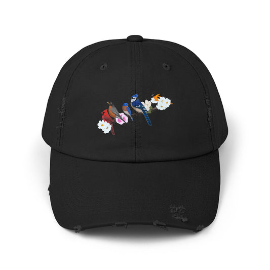 Blue Jay Cardinal Robin Bluebird Oriole on a Branch Bird Art Distressed Cap