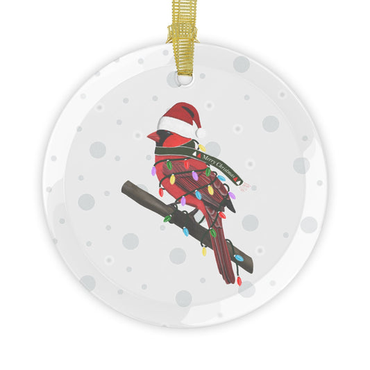 Cardinal as Santa Claus with Fairy Lights Christmas Glass Ornament