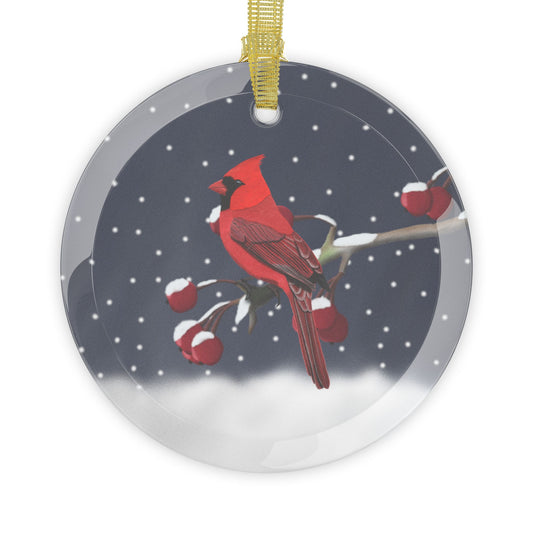 Cardinal on a Winter Branch Christmas Bird Glass Ornament