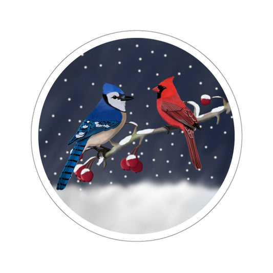 Blue Jay Cardinal on a Winter Branch Christmas Bird Sticker