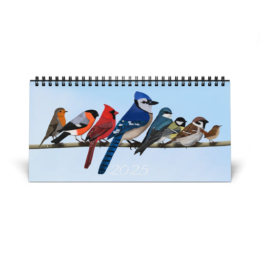 Backyard Birds Blue Jay Cardinal Robin Desktop Calendar with 2025 Grid