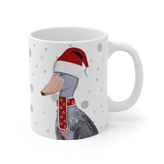 Shoebill with Red Santa Hat and Scarf Christmas Bird Ceramic Mug 11oz