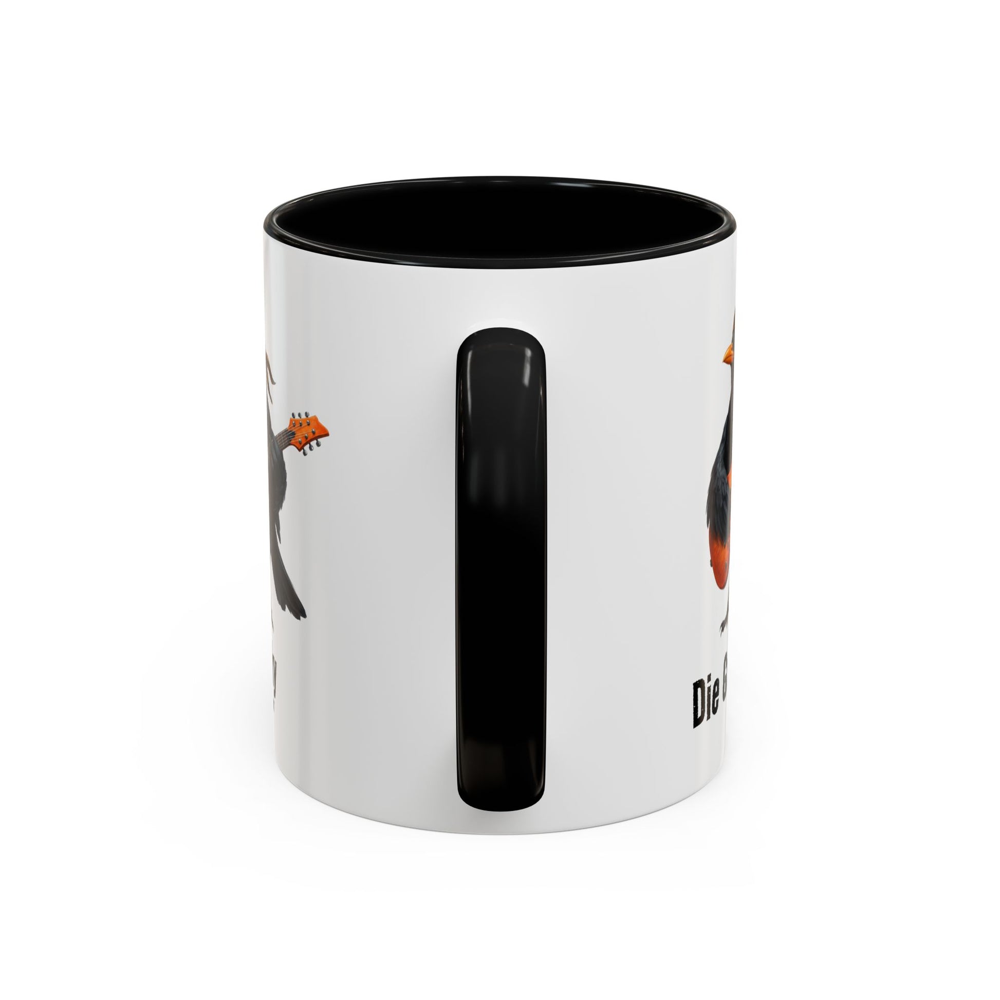 Blacky die Amsel (Lead Guitar) – Die Gartenvögel Offizielle Band-Tasse | Zweifarbige Premium Keramik (Schwarz/Weiß)