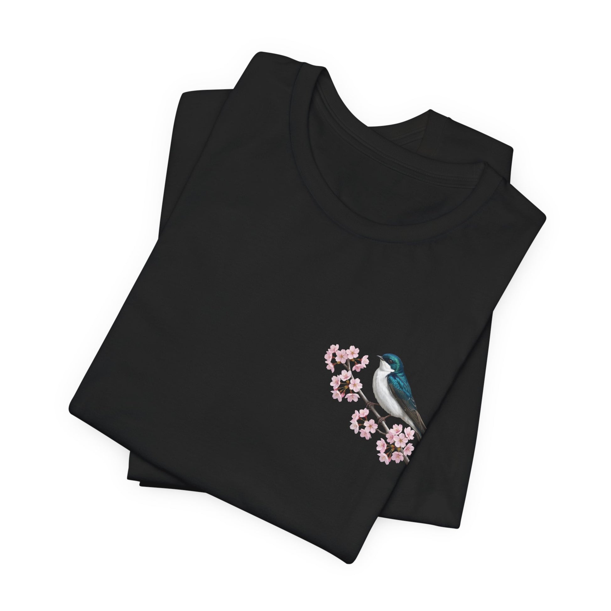 Tree Swallow Cherry Blossom T-Shirt | Floral Spring Tee for Bird Lovers