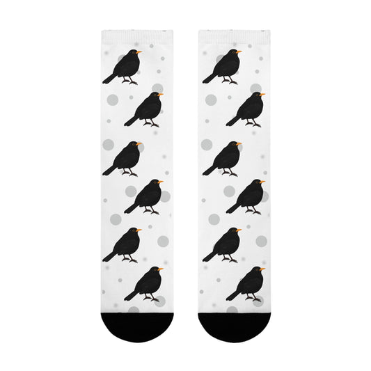 Amsel Socken Vogelsocken Weiß mit Grauen Punkten