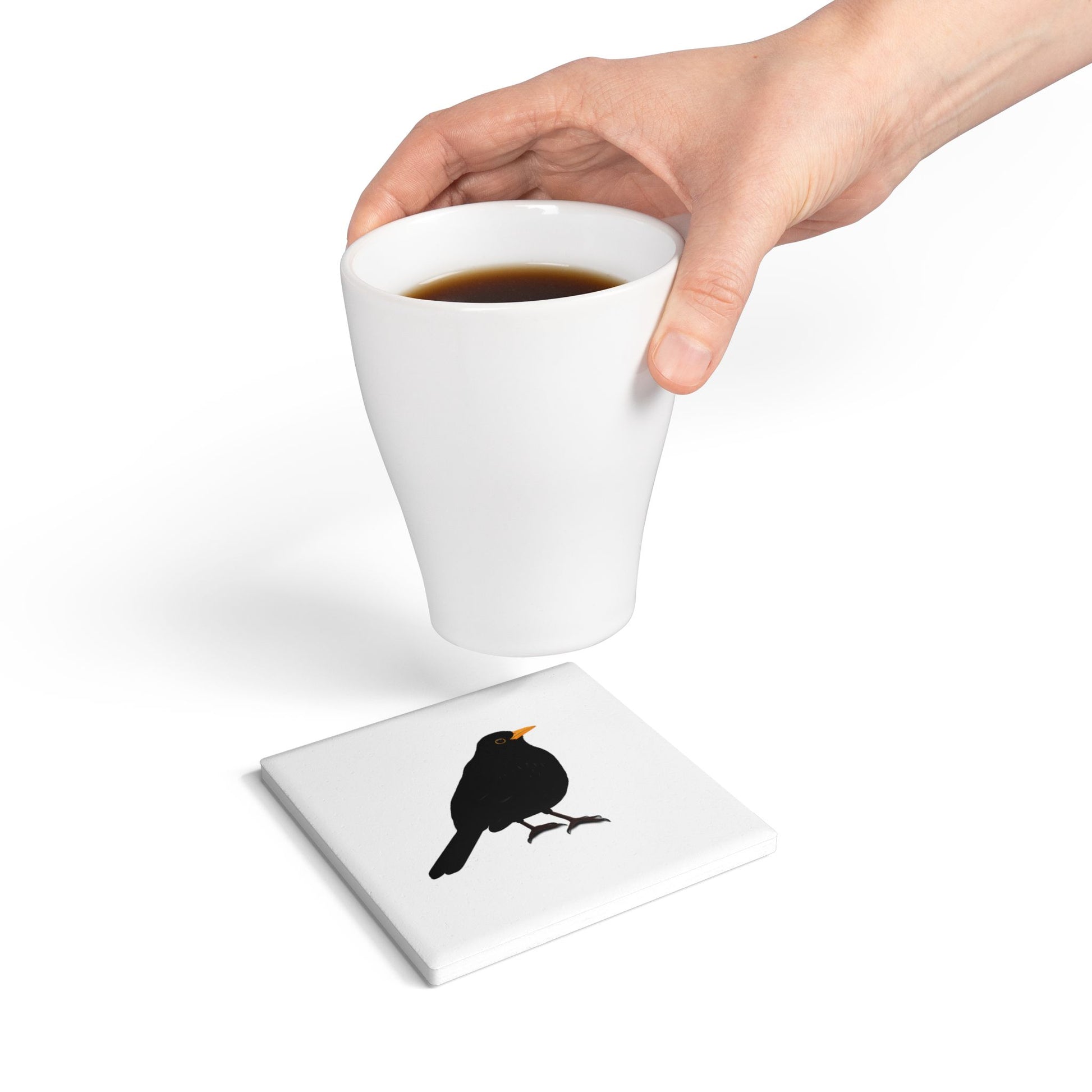 Mach’s dir gemütlich: Deine neuen Amsel Keramik-Untersetzer mit Vogelmotiv!