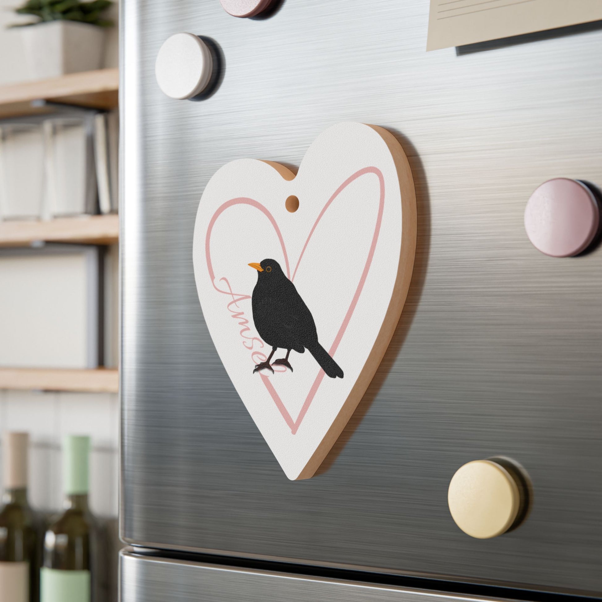Amsel Ornament Herz aus Holz mit Vogelmotiv für Vogelfreunde