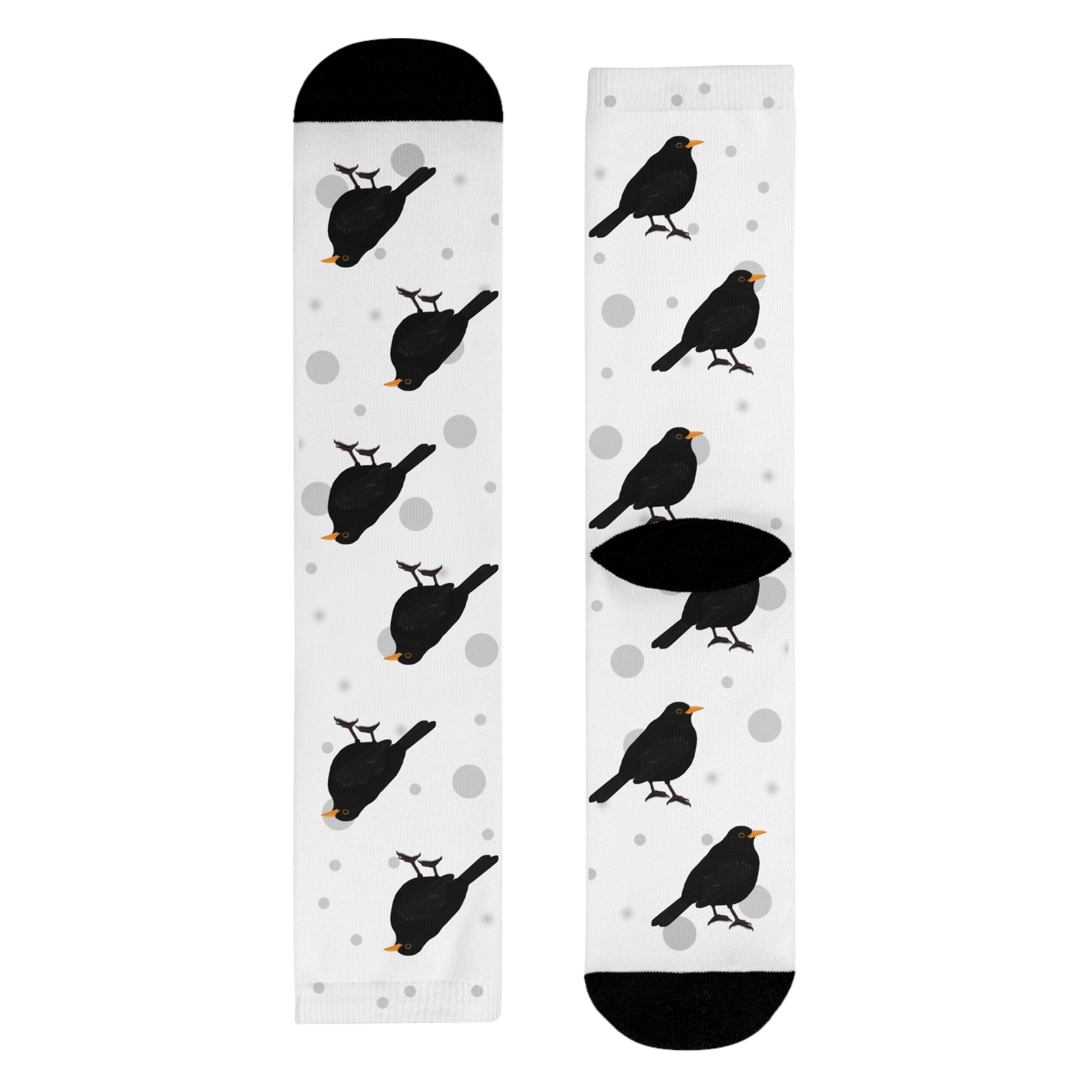 Amsel Socken Vogelsocken Weiß mit Grauen Punkten