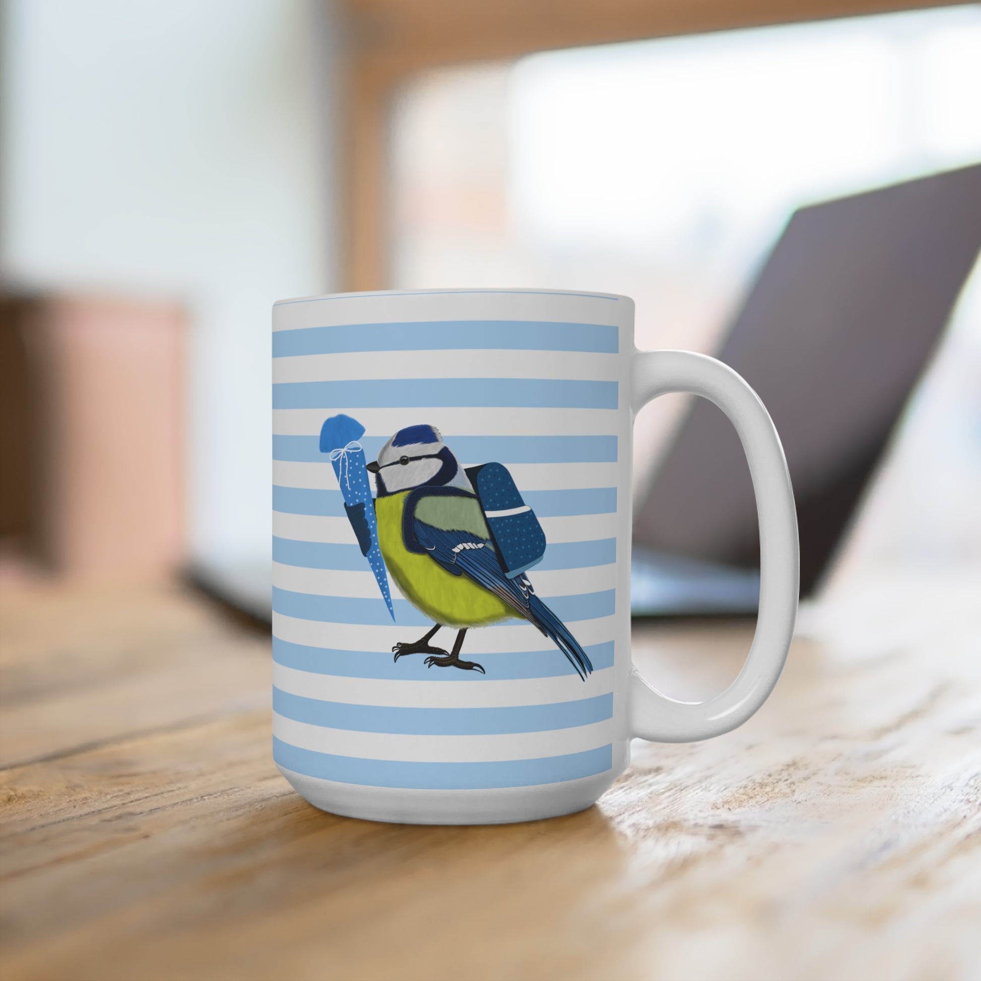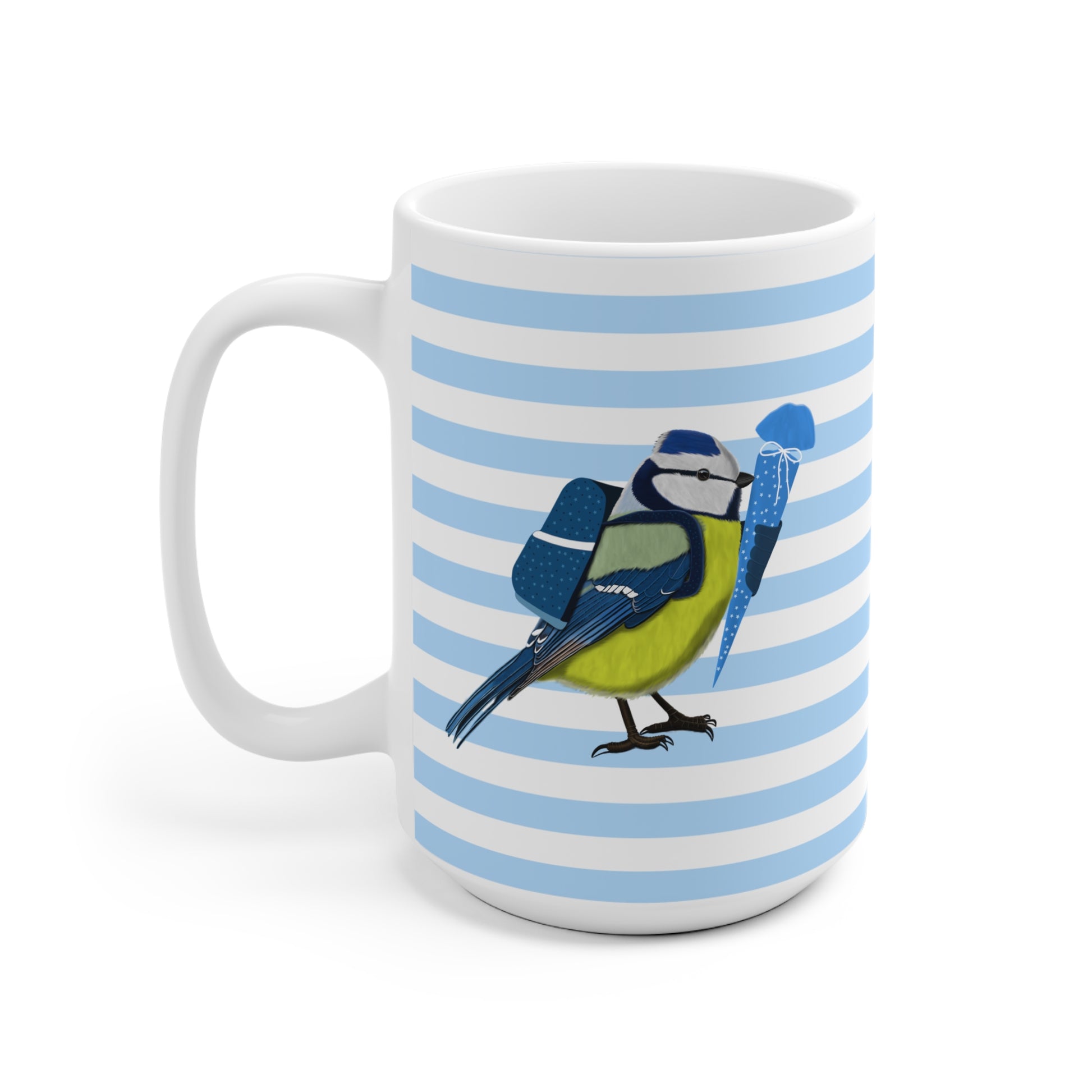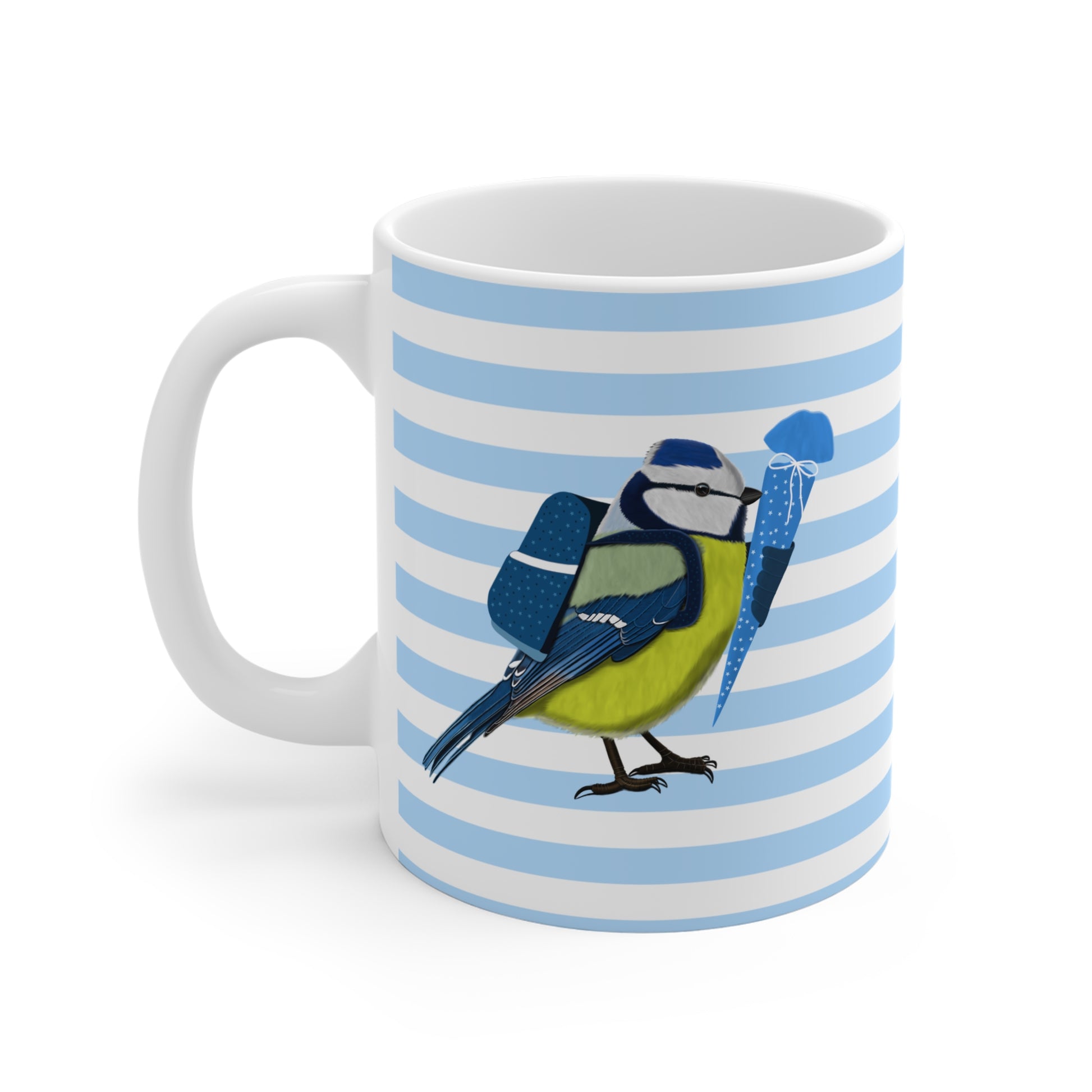 Blaumeise Vogel Tasse als Geschenk zur Einschulung Blau Weiß