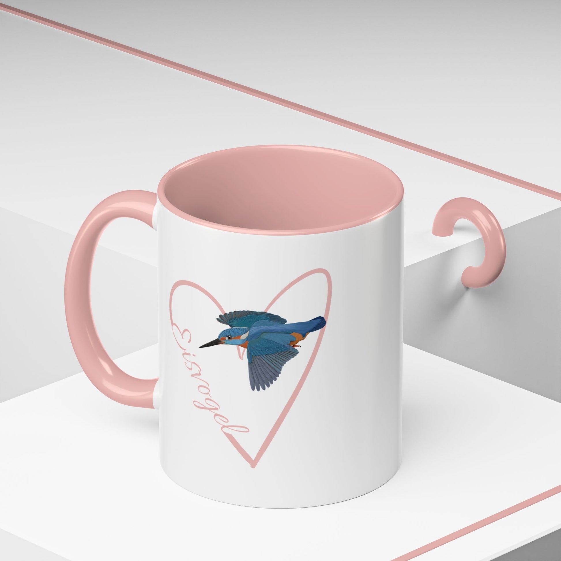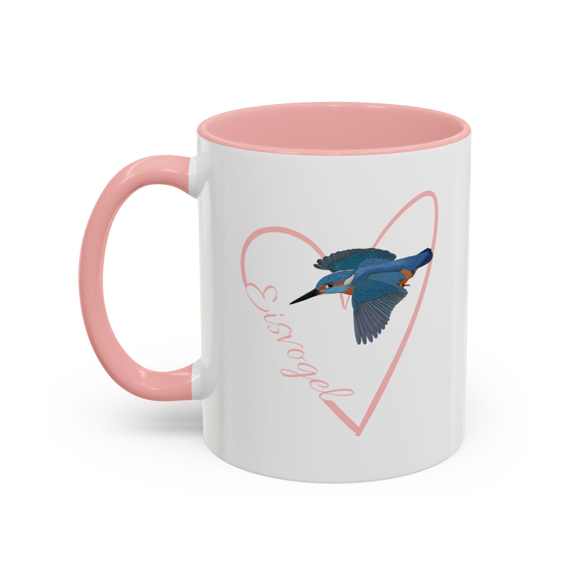 Eisvogel mit Herz Singvogel Vogel Tasse Weiß Rosa