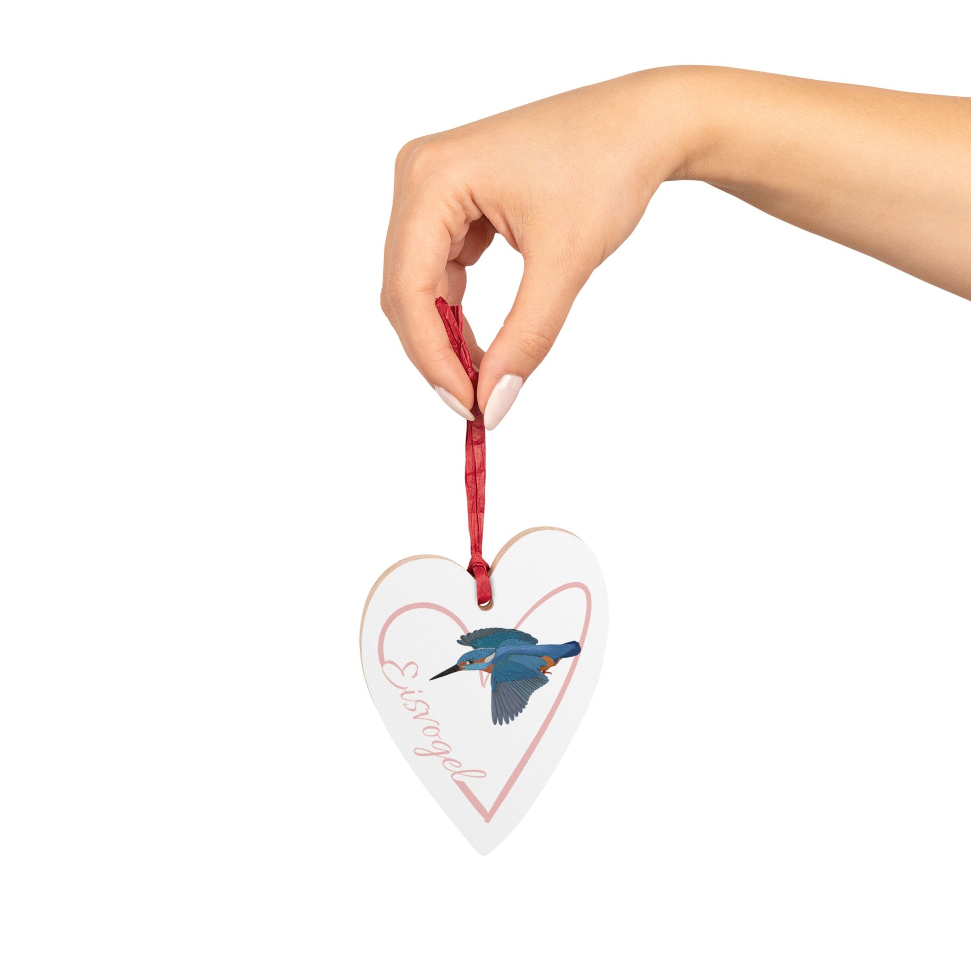 Eisvogel Ornament Herz aus Holz mit Vogelmotiv für Vogelfreunde