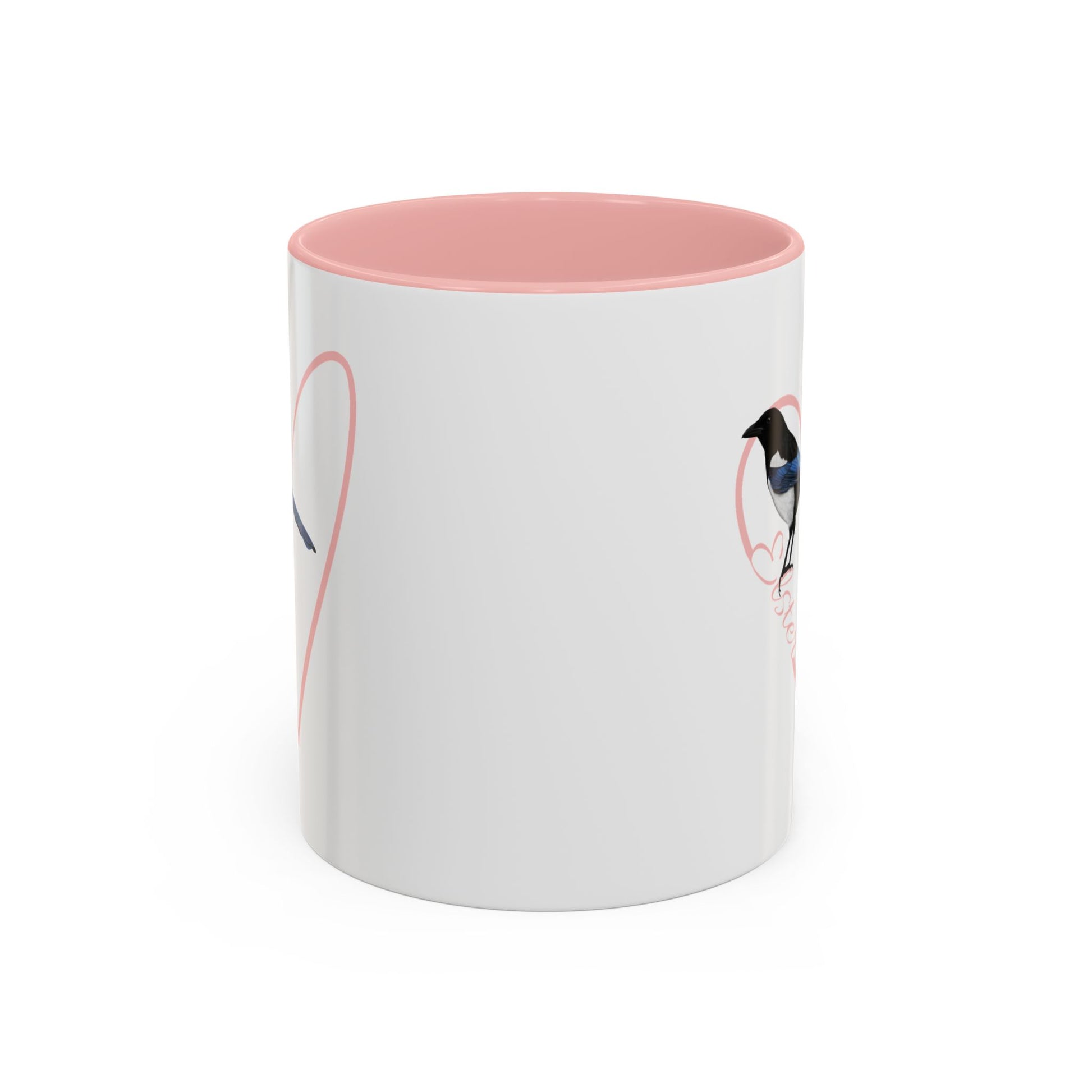 Elster mit Herz Singvogel Vogel Tasse Weiß Rosa