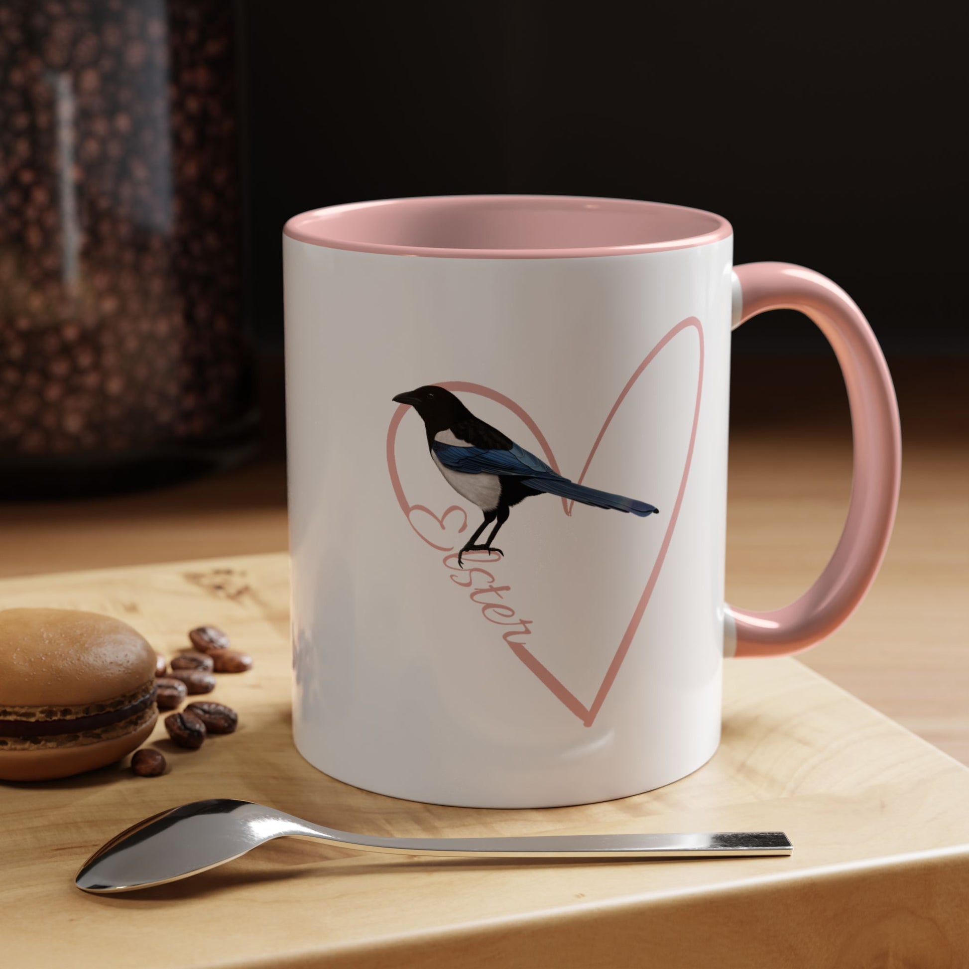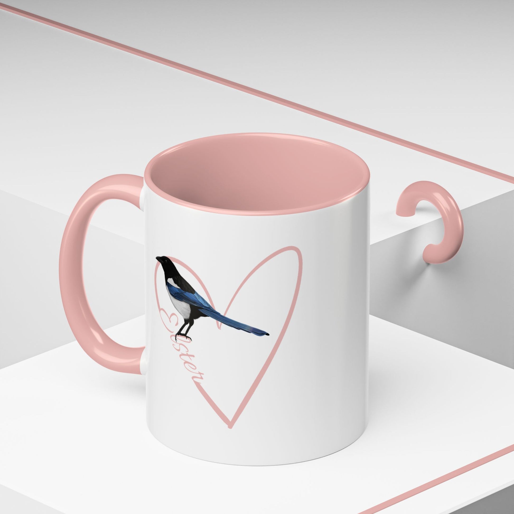Unsere Elster mit einem rosa Herz Vogel Tasse ist perfekt als Geschenk für Singvogel-Freunde, um Tee und heiße Schokolade zu trinken. Die klassische Tasse ist in der Größe 11 oz. (0,33l) erhältlich und eignet sich hervorragend als Geschenk für alle Vogelbeobachter.