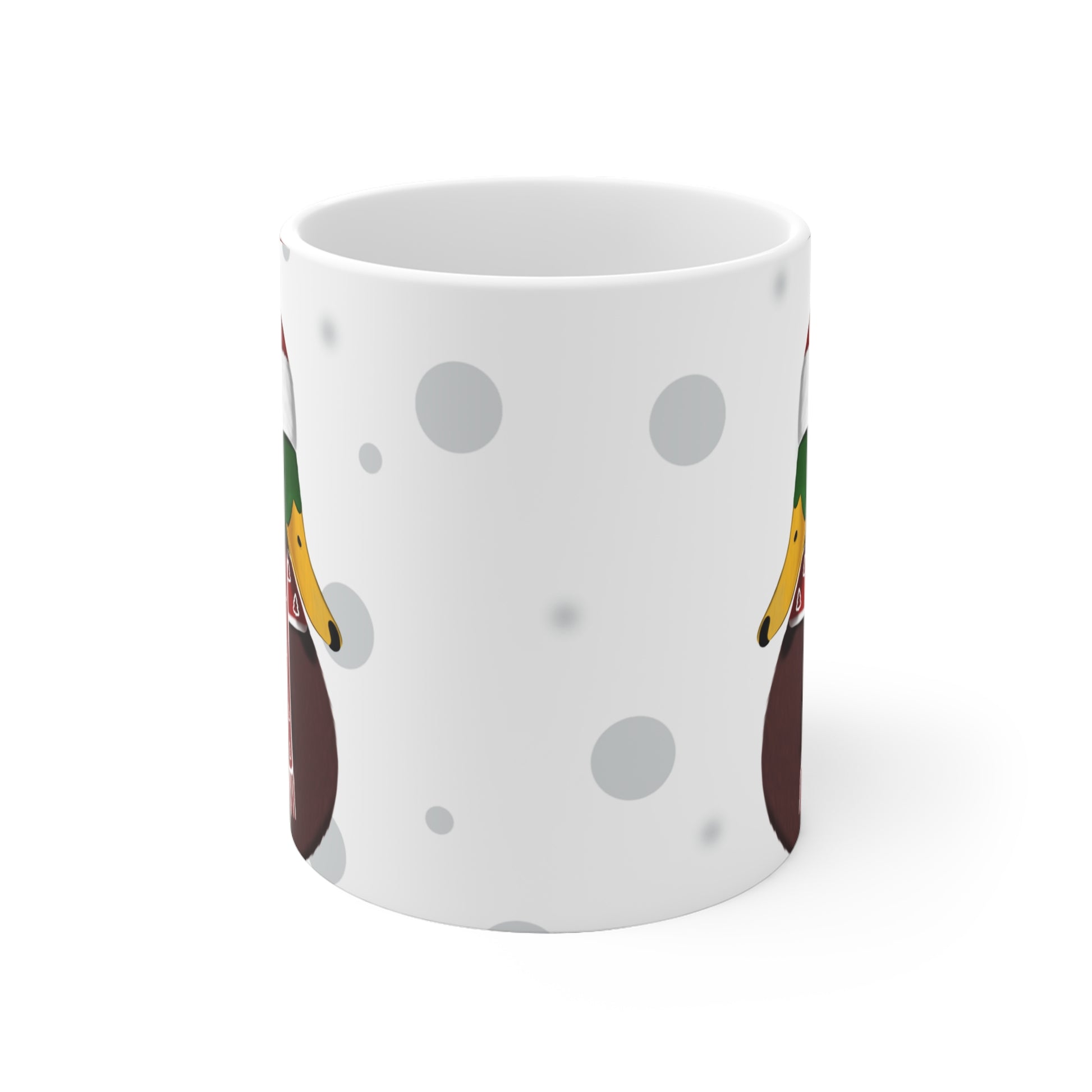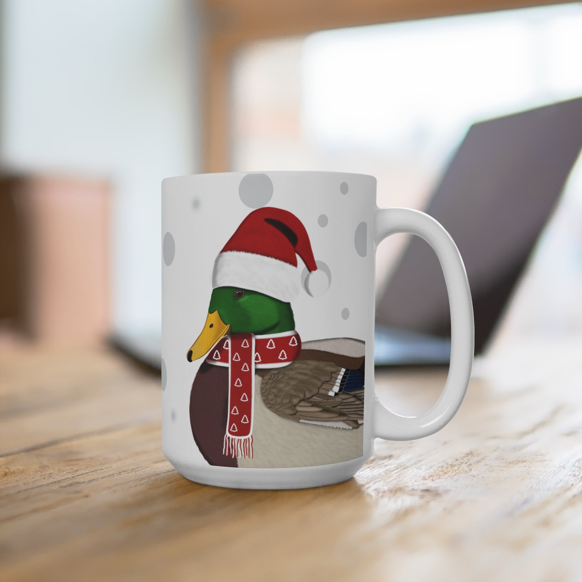 Unsere Ente als Weihnachtsmann Vogel Tasse ist perfekt für Tee und heiße Schokolade. Die klassische Tasse ist in den Größen 11 oz. (0,33l) und 15 oz. (0,44l) erhältlich und eignet sich hervorragend als Weihnachtsgeschenk für alle Vogelfreunde.