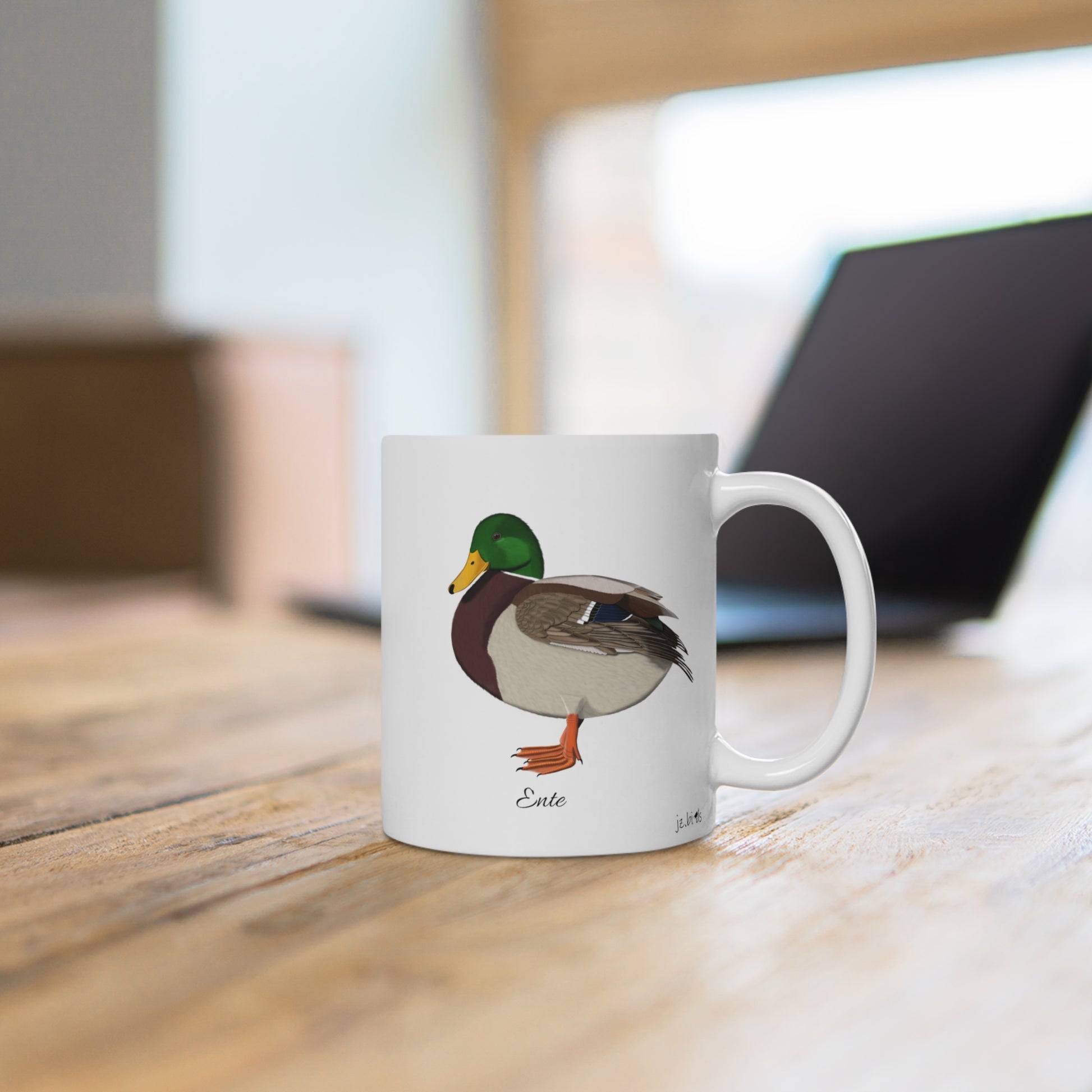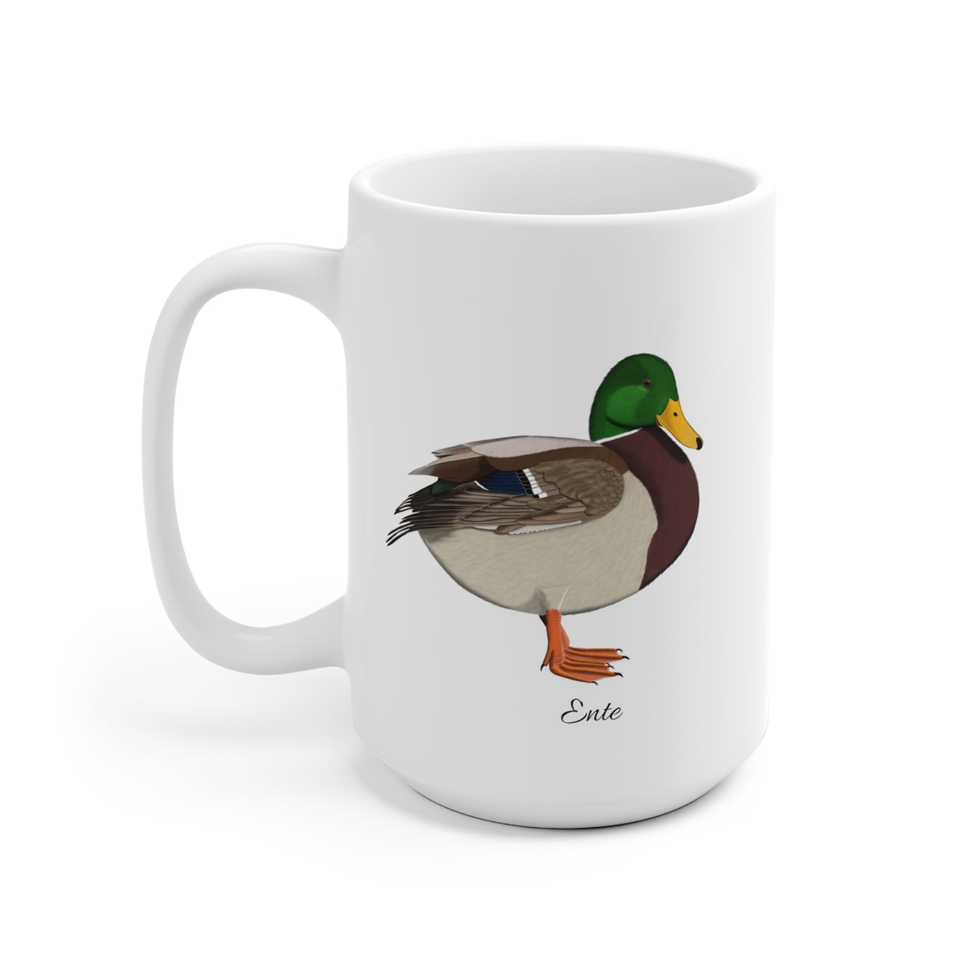 Unsere Ente Vogel Tasse ist perfekt für Tee und heiße Schokolade. Die klassische Tasse ist in den Größen 11 oz. (0,33l) und 15 oz. (0,44l) erhältlich und eignet sich hervorragend als Geschenk für alle Vogelfreunde und Vogelbeobachter.