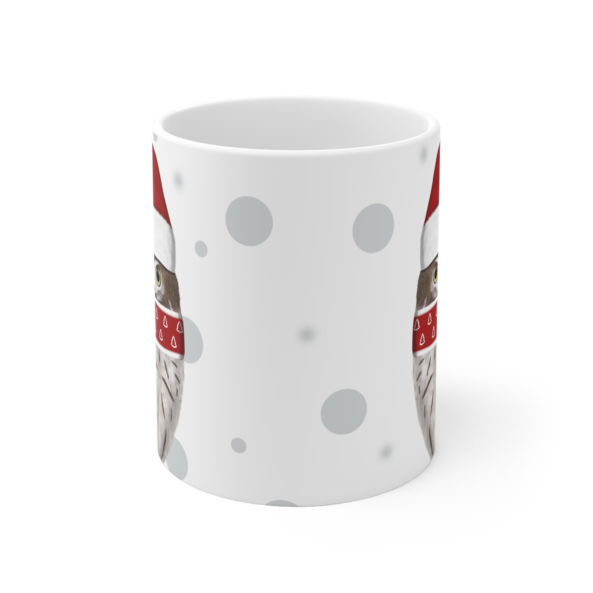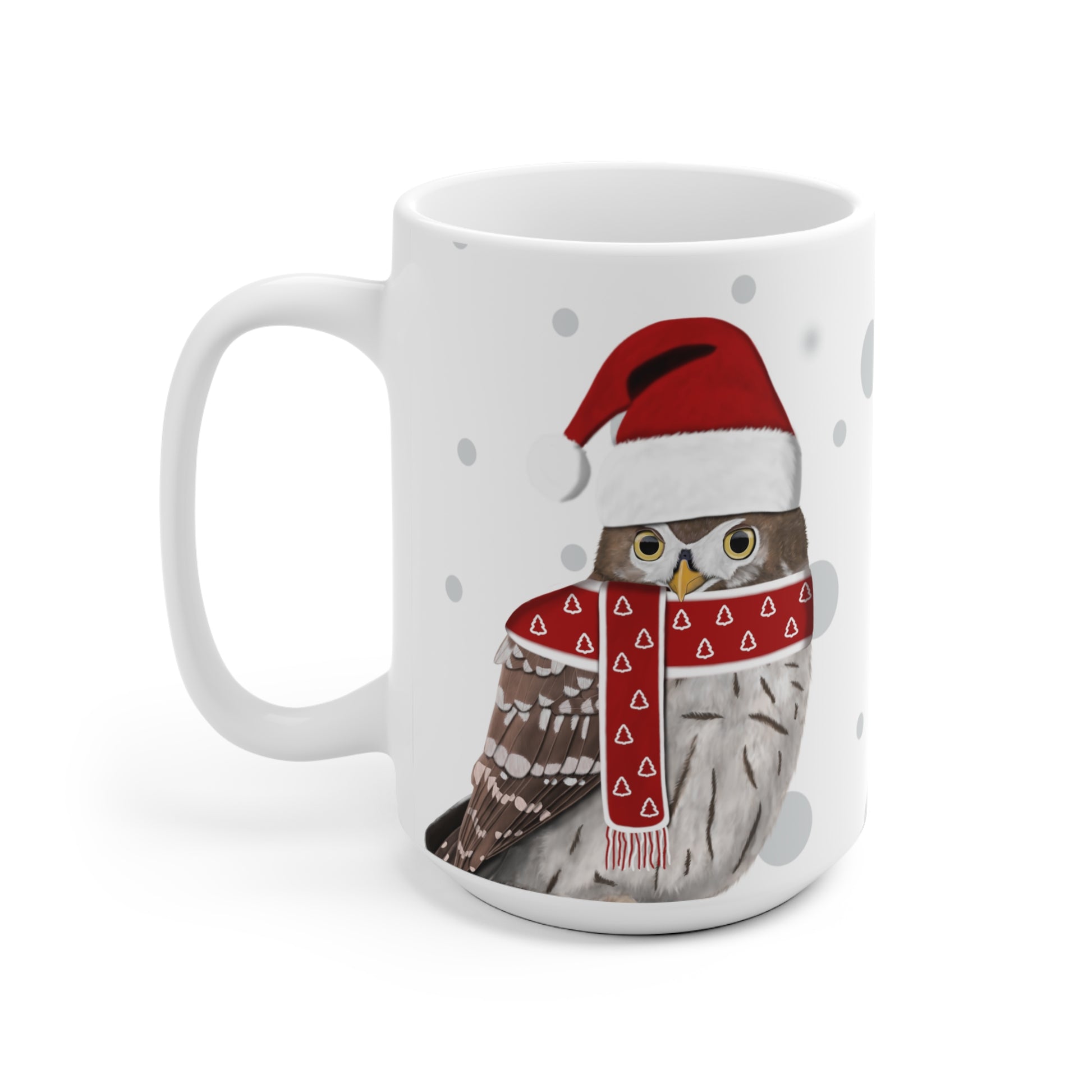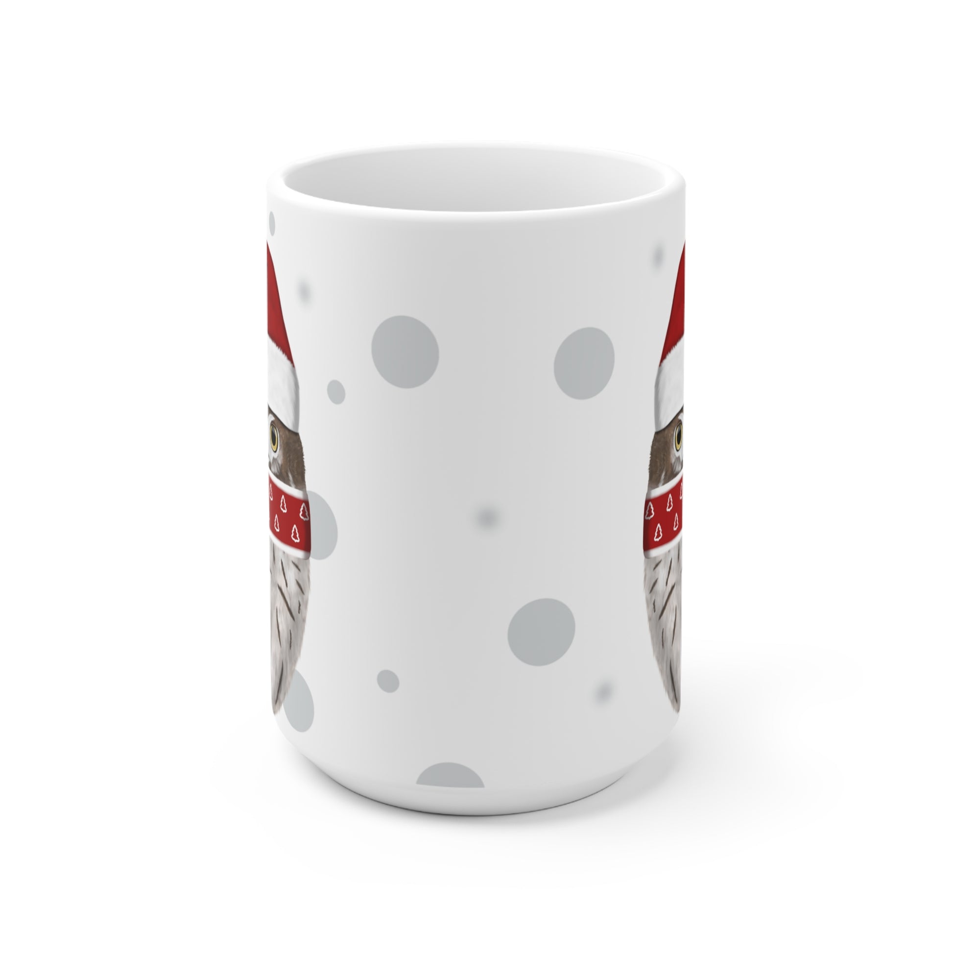 Unsere Eule als Weihnachtsmann Vogel Tasse ist perfekt für Tee und heiße Schokolade. Die klassische Tasse ist in den Größen 11 oz. (0,33l) und 15 oz. (0,44l) erhältlich und eignet sich hervorragend als Weihnachtsgeschenk für alle Vogelfreunde.