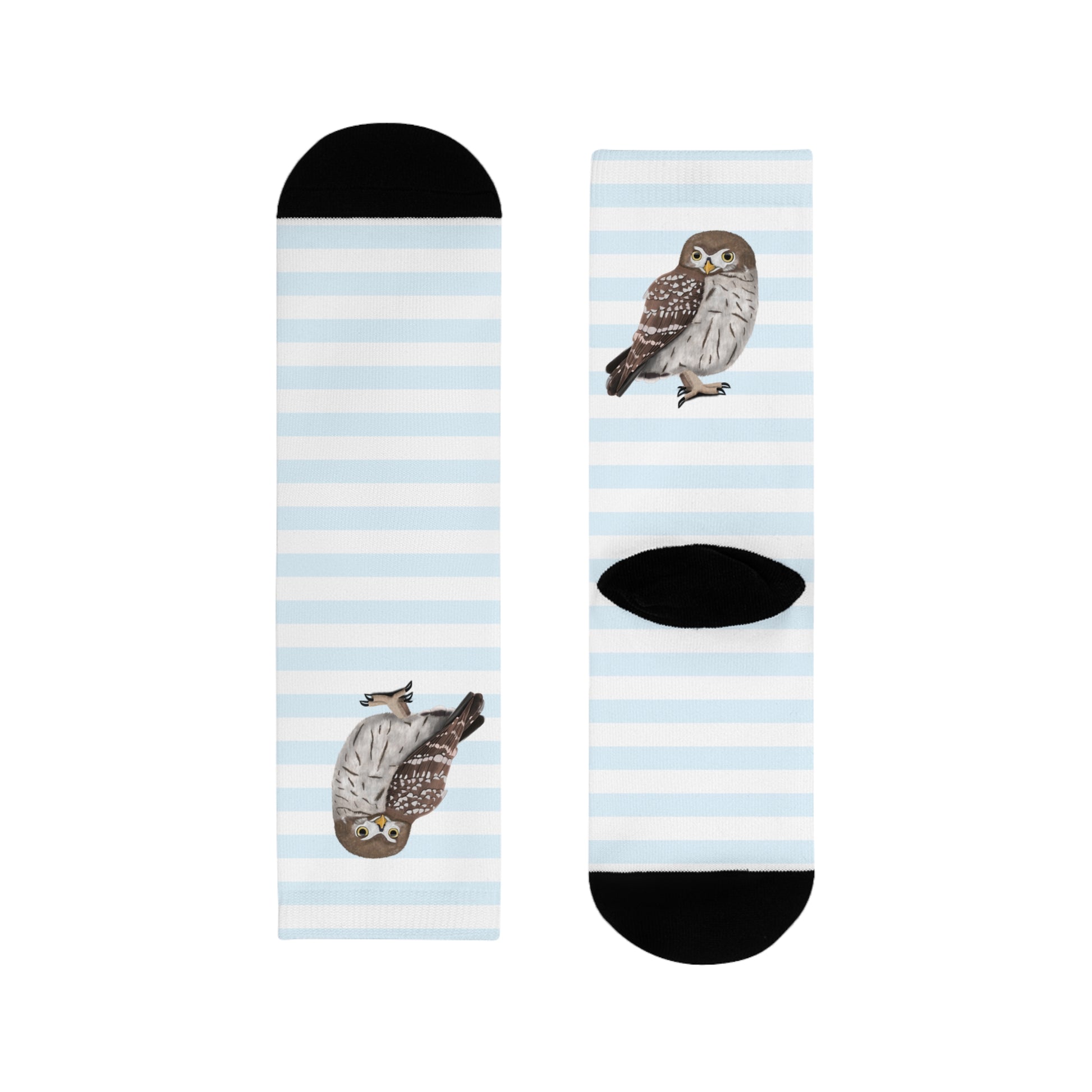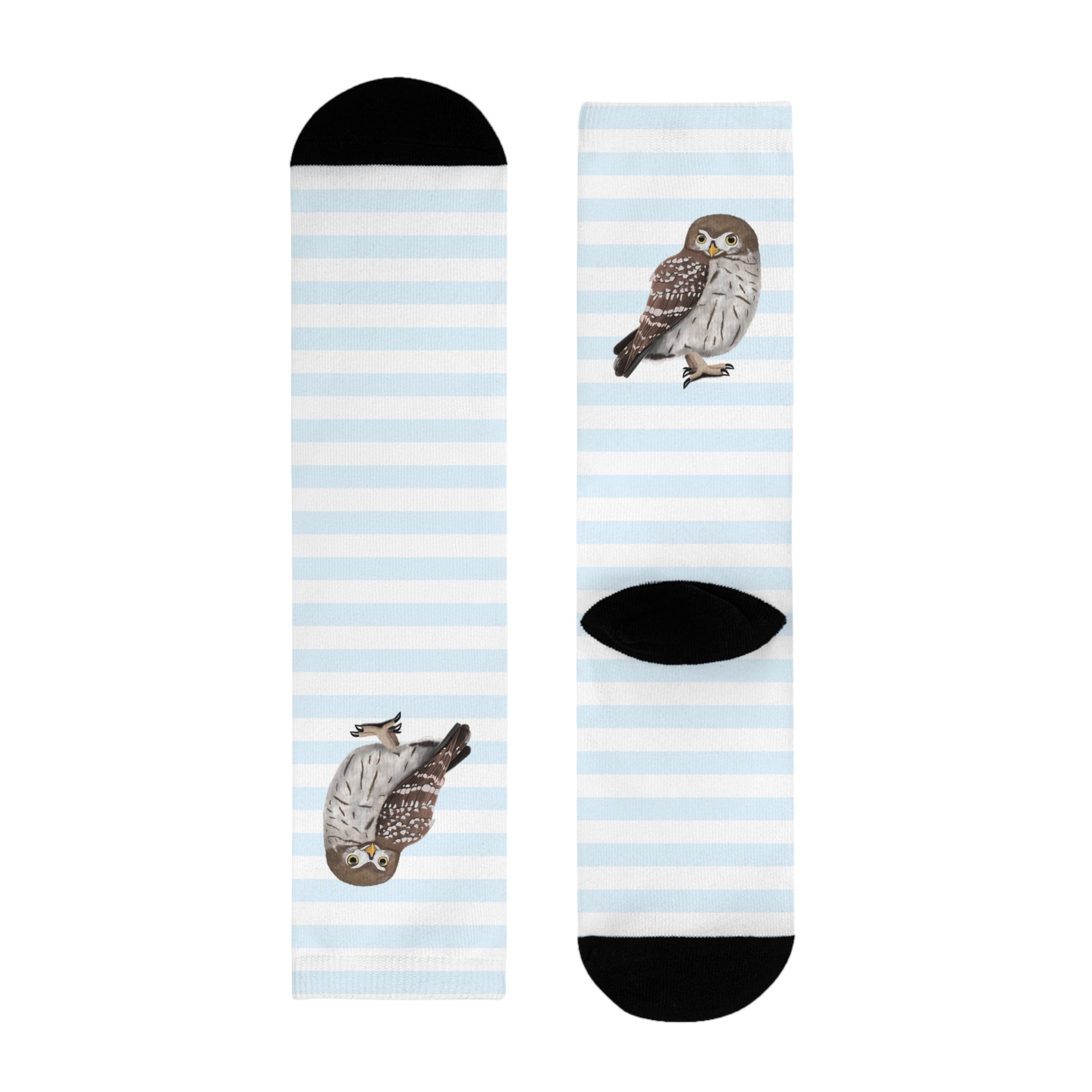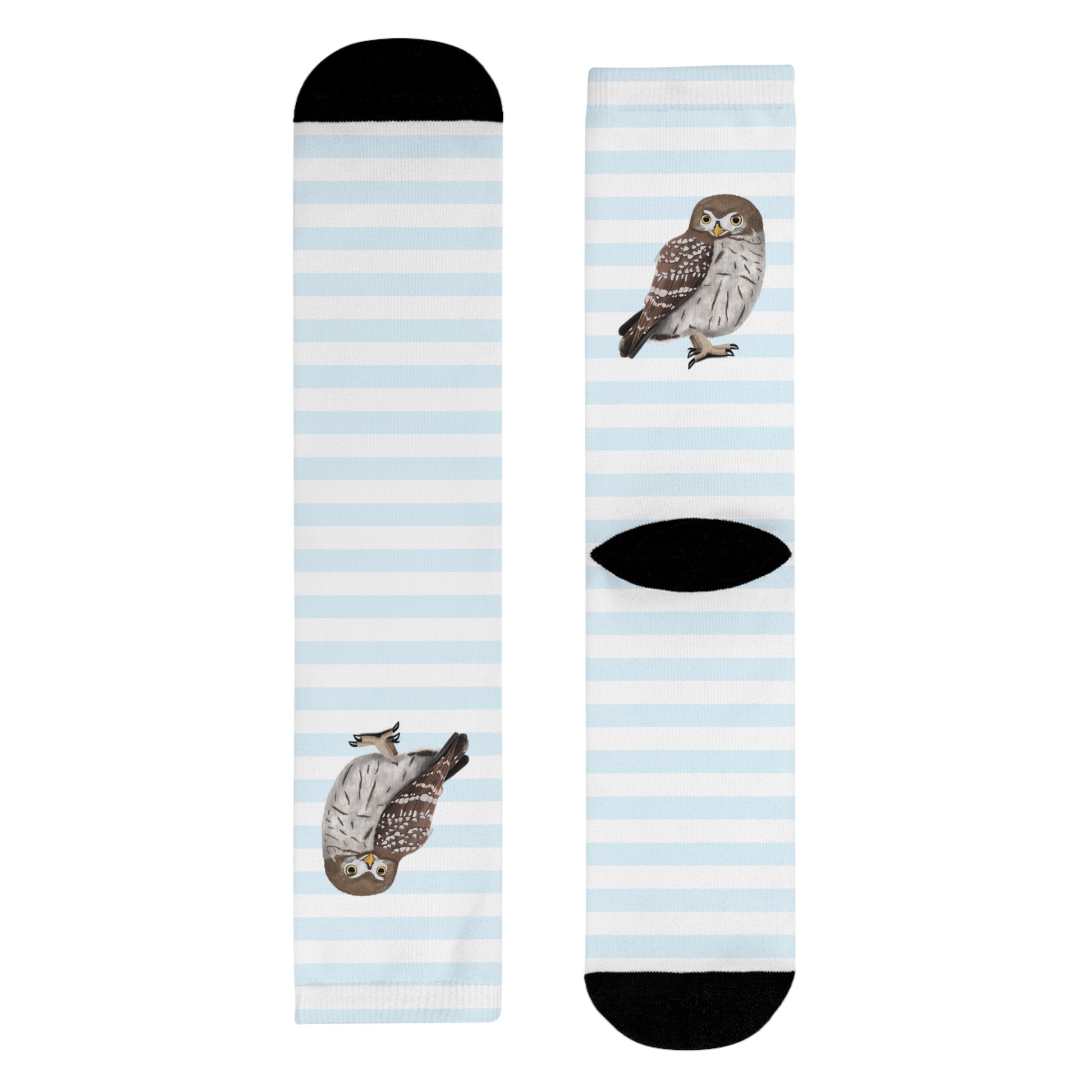 Eule Vogel Socken mit Blau Weißen Streifen für Vogelfreunde & Vogelbeobachter