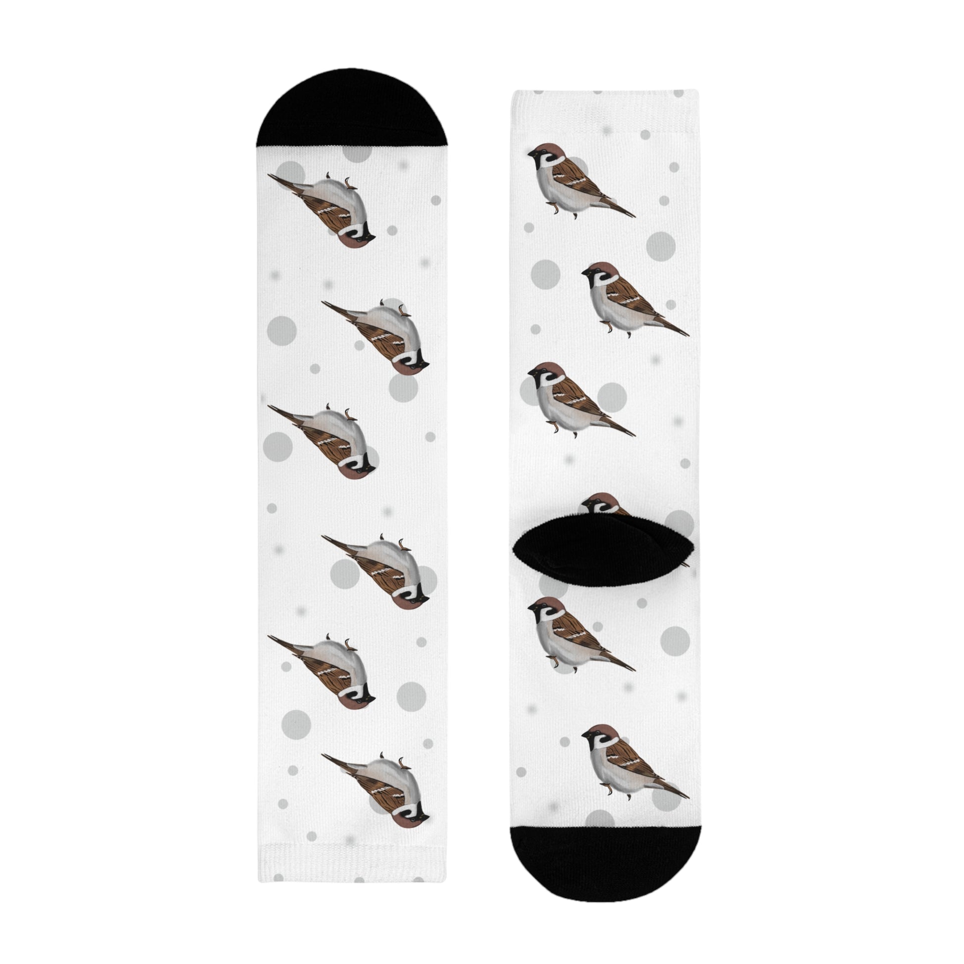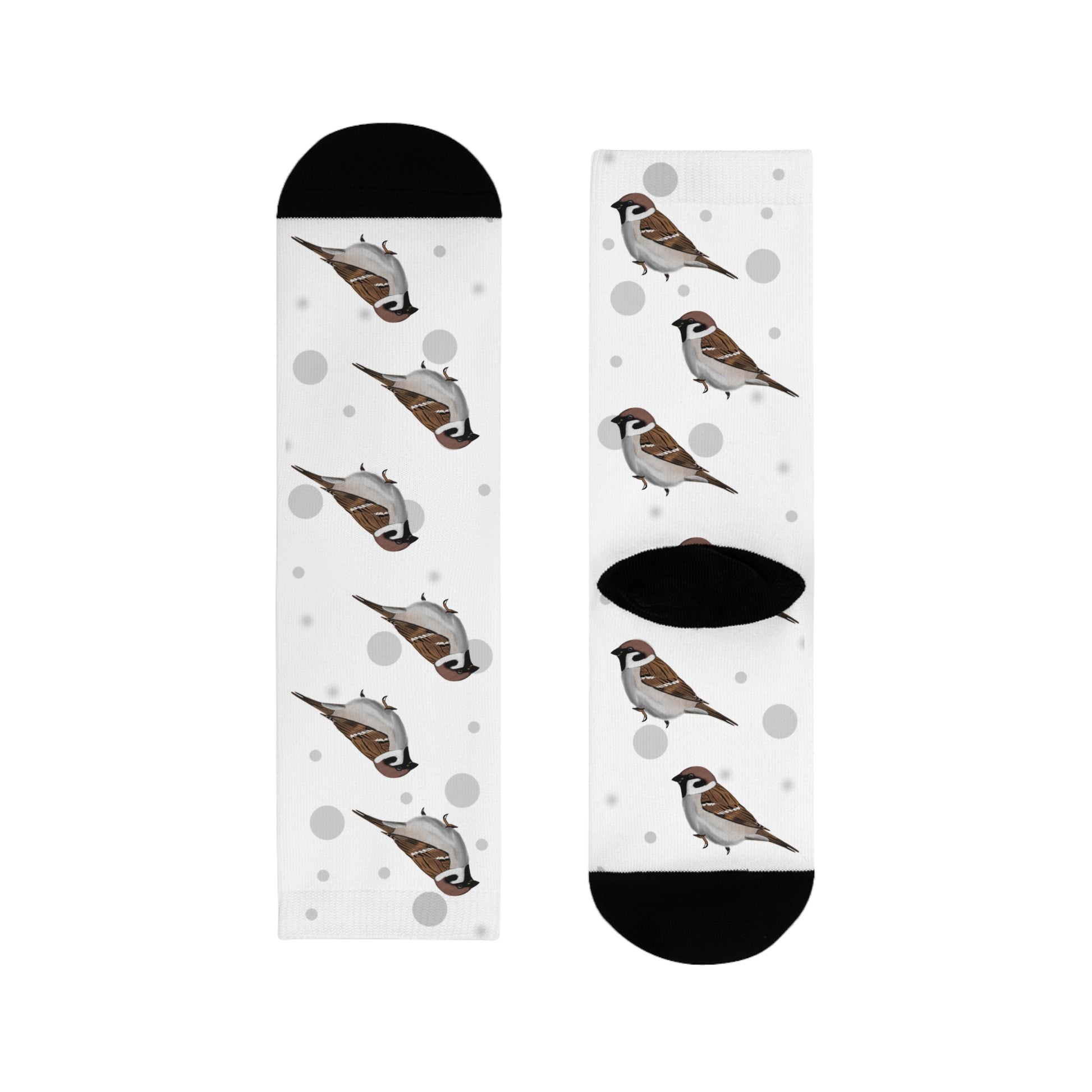 Feldsperling Socken Vogelsocken Weiß mit Grauen Punkten