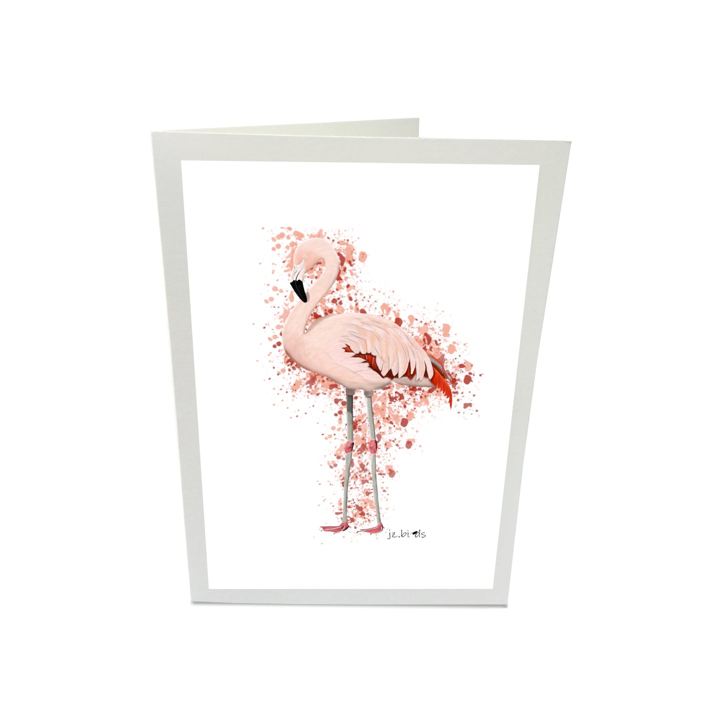 Flamingo Vogel Grußkarte mit Umschlag Punkte