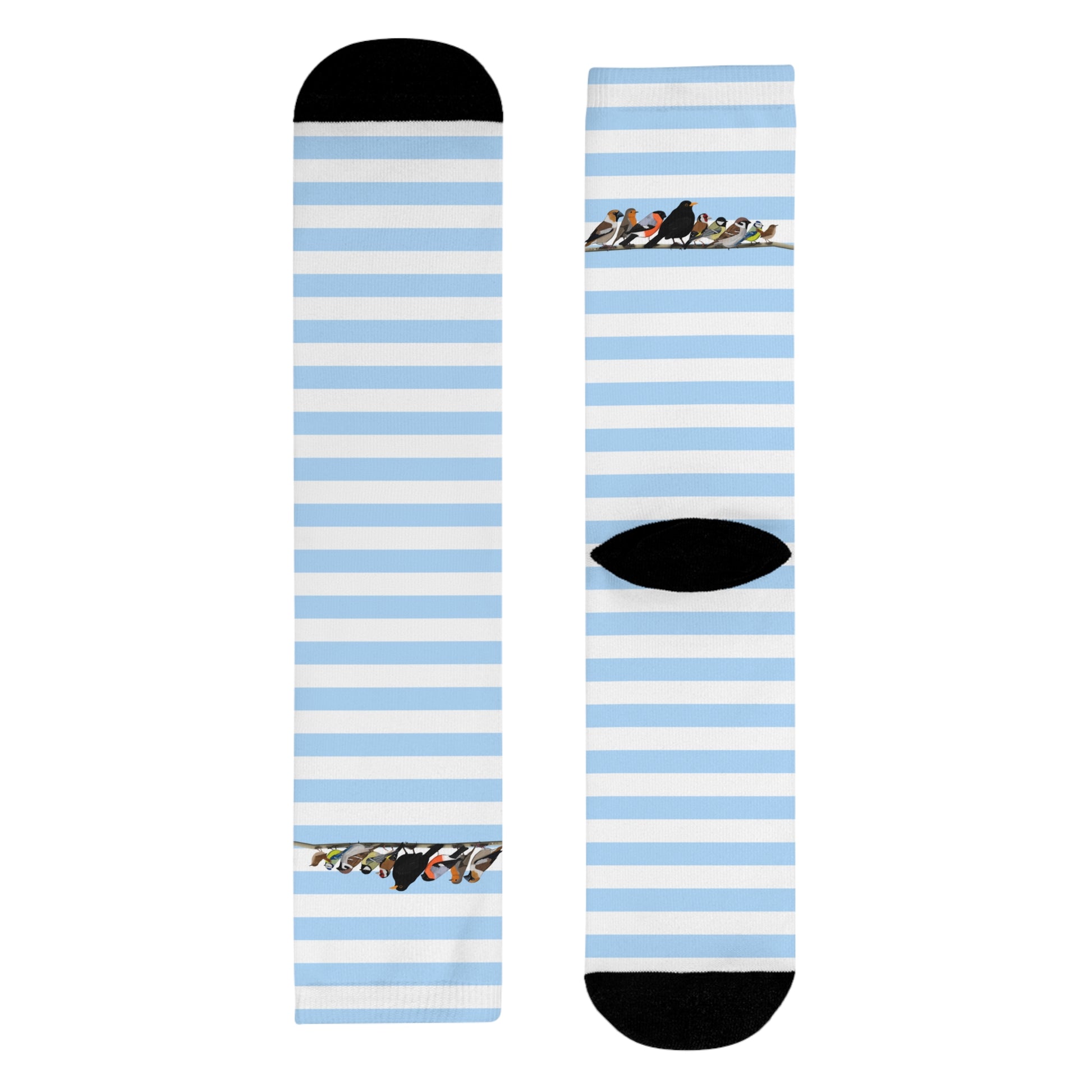 Gartenvögel auf einem Ast Amsel Rotkehlchen Blaumeise Vogel Socken mit Blau Weißen Streifen für Vogelfreunde & Vogelbeobachter