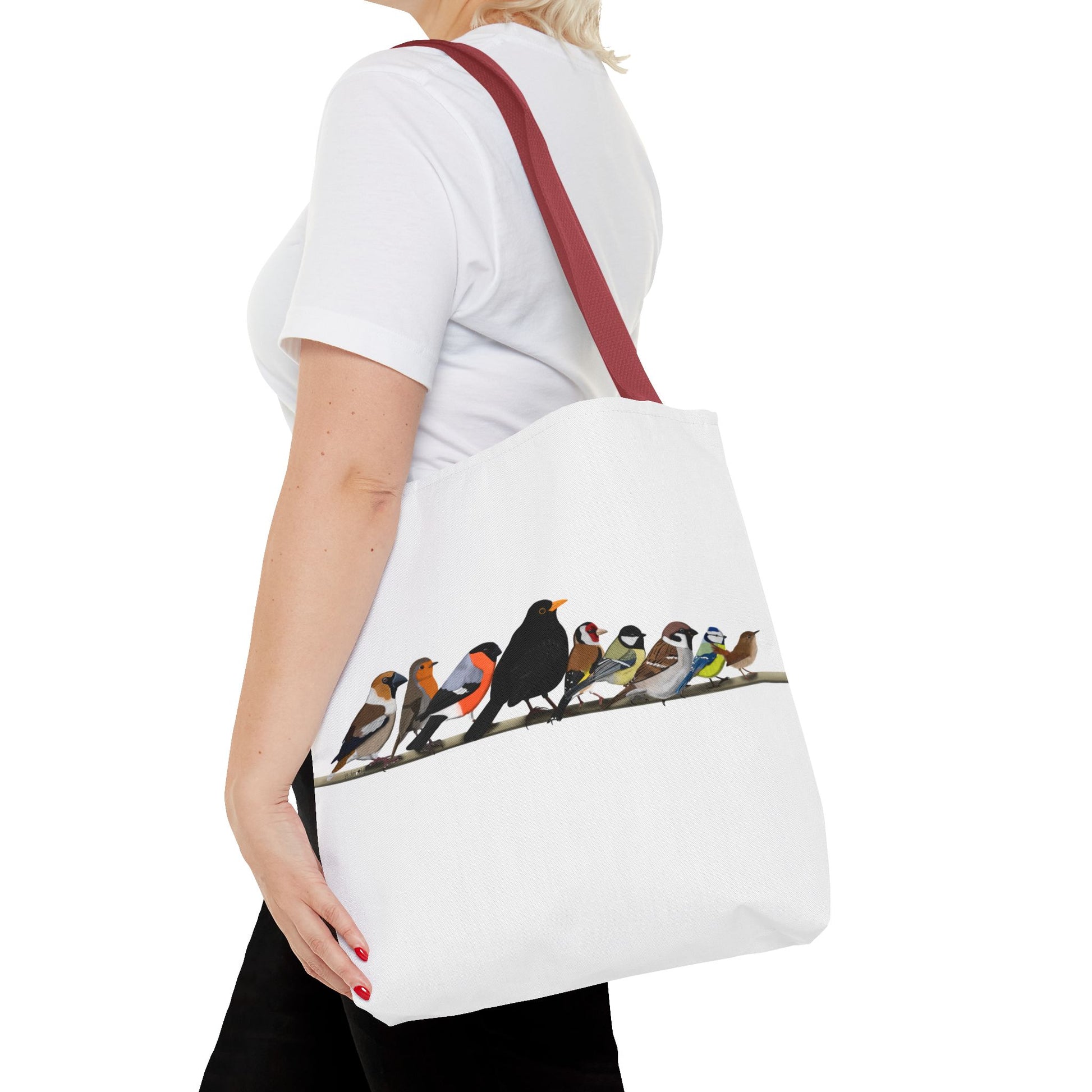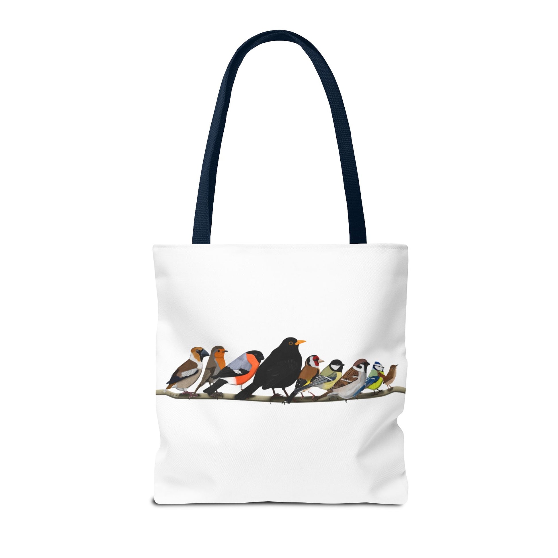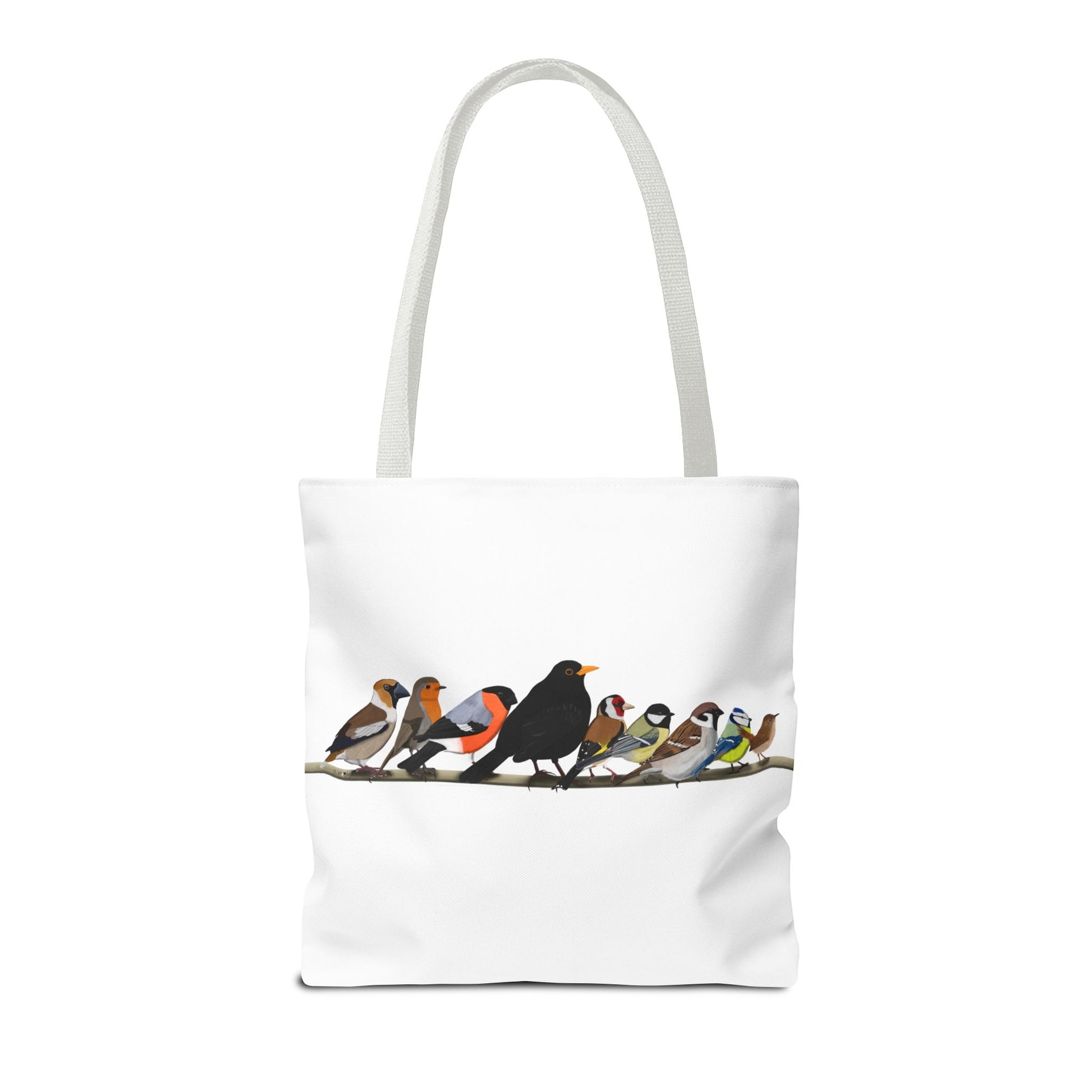 Erlebe die Freude an der Vogelbeobachtung mit unserer Gartenvögel auf einem Ast Tragetasche! Diese stilvolle Tasche mit den Maßen 40x40cm und einem süßen Amsel, Rotkehlchen, Blaumeise, Zaunkönig Design ist perfekt geeignet, um alle wichtigen Dinge für die Vogelbeobachtung mitzunehmen. Ob du nun ein erfahrener Vogelbeobachter bist oder gerade erst anfängst, diese Tasche ist ein Muss für alle Vogelliebhaber.
