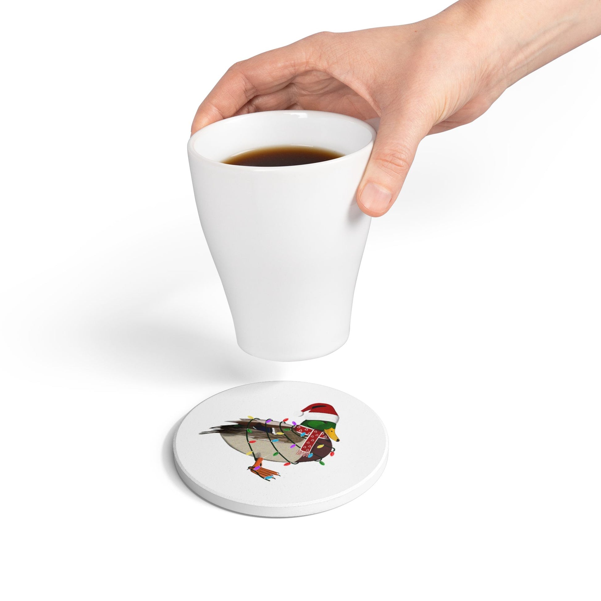 Keramik-Untersetzer Ente als Weihnachtsmann mit Lichterkette Weihnachtliches Vogel-Motiv