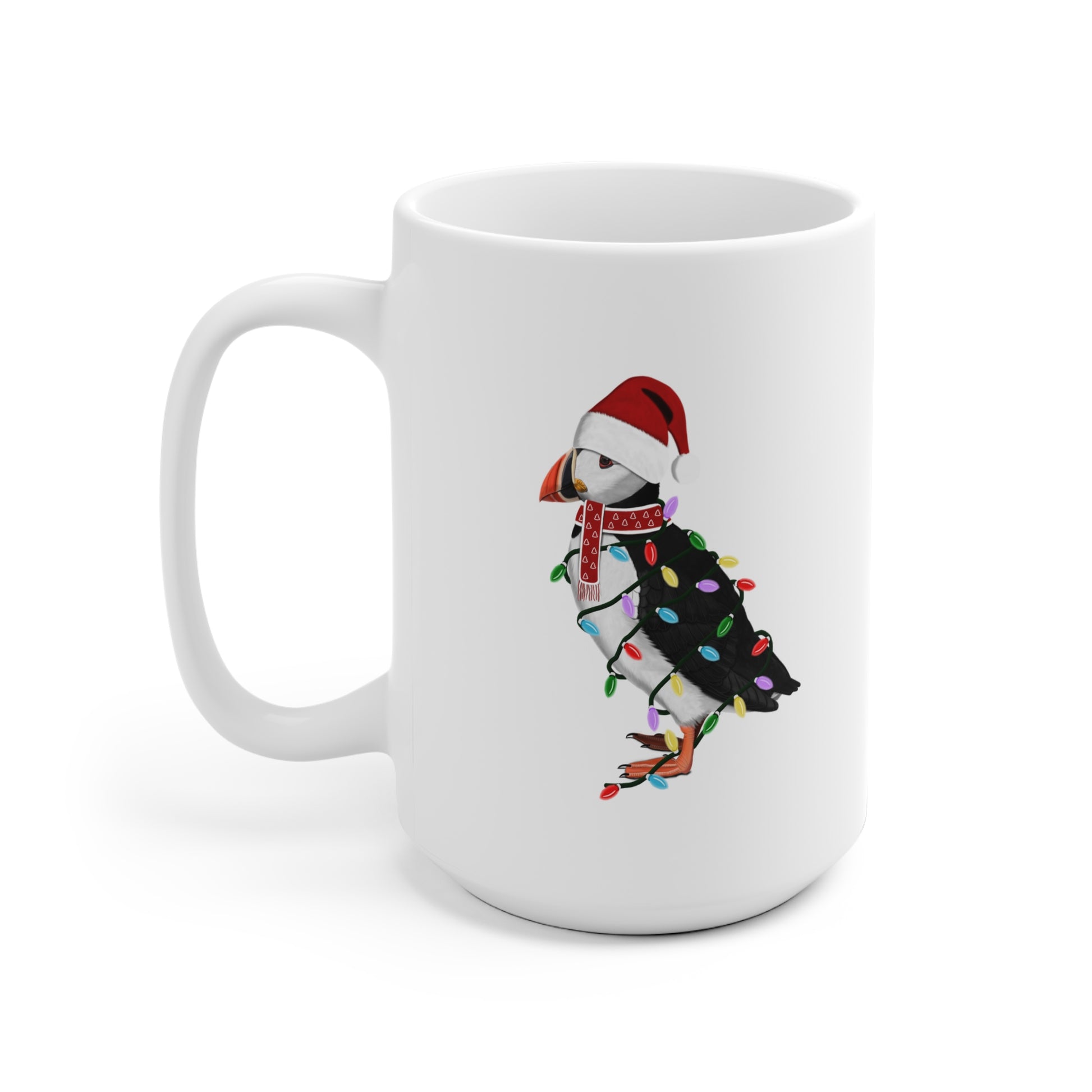 Unsere weihnachtliche Papageitaucher Tasse ist perfekt für Tee und heiße Schokolade. Die klassische Tasse ist in den Größen 11 oz. (0,33l) und 15 oz. (0,44l) erhältlich und eignet sich hervorragend für alle Vogelfreunde und Vogelbeobachter als Weihnachtsgeschenk.