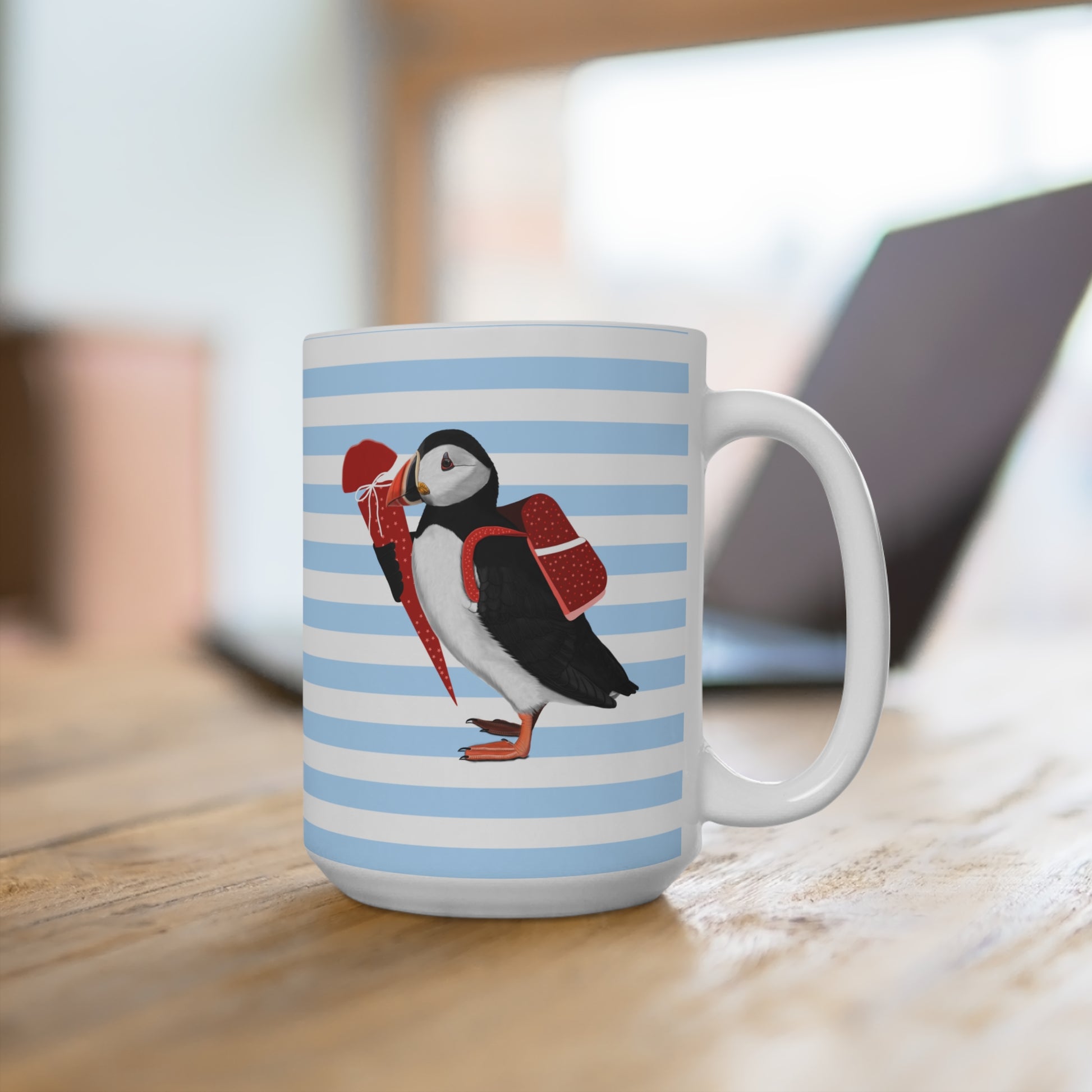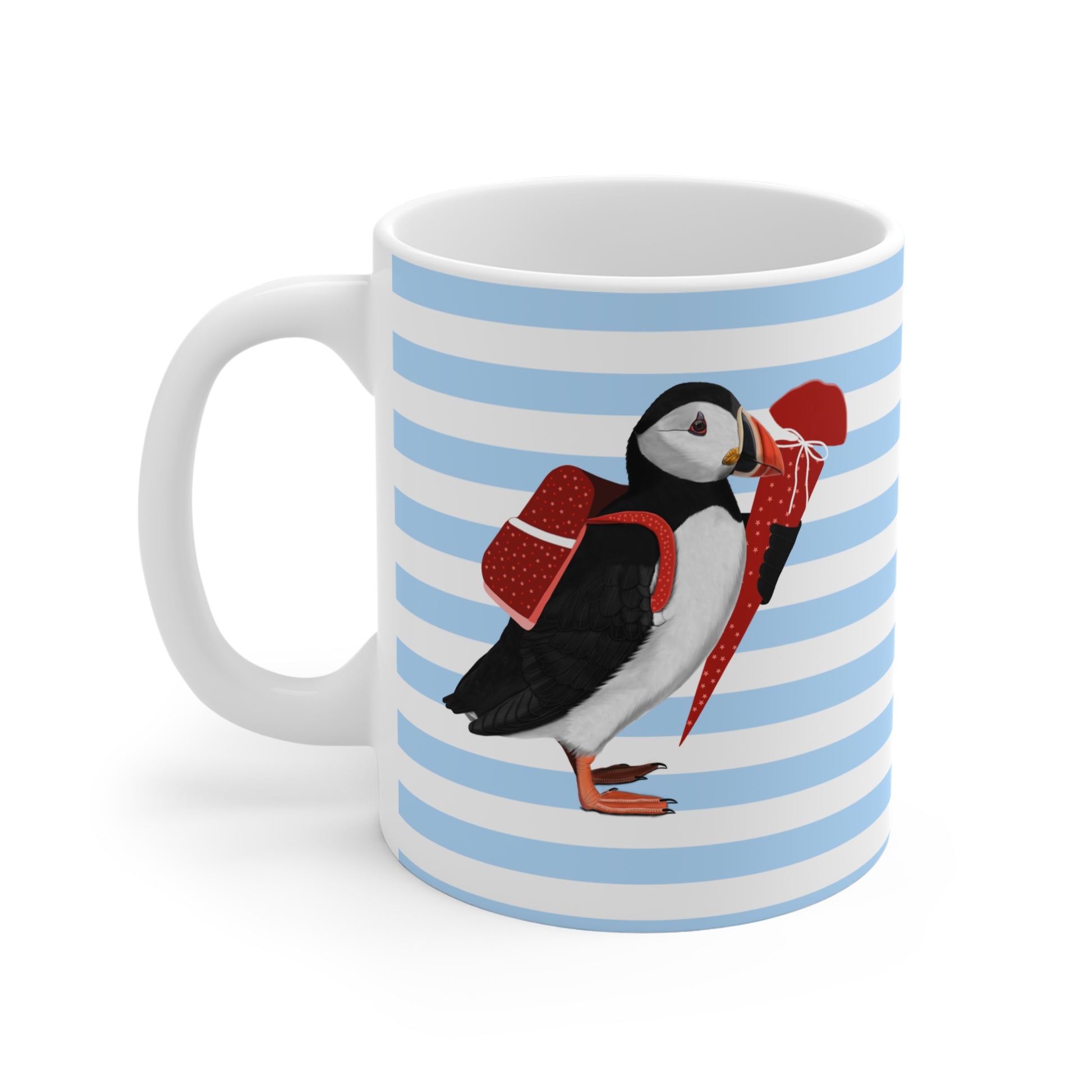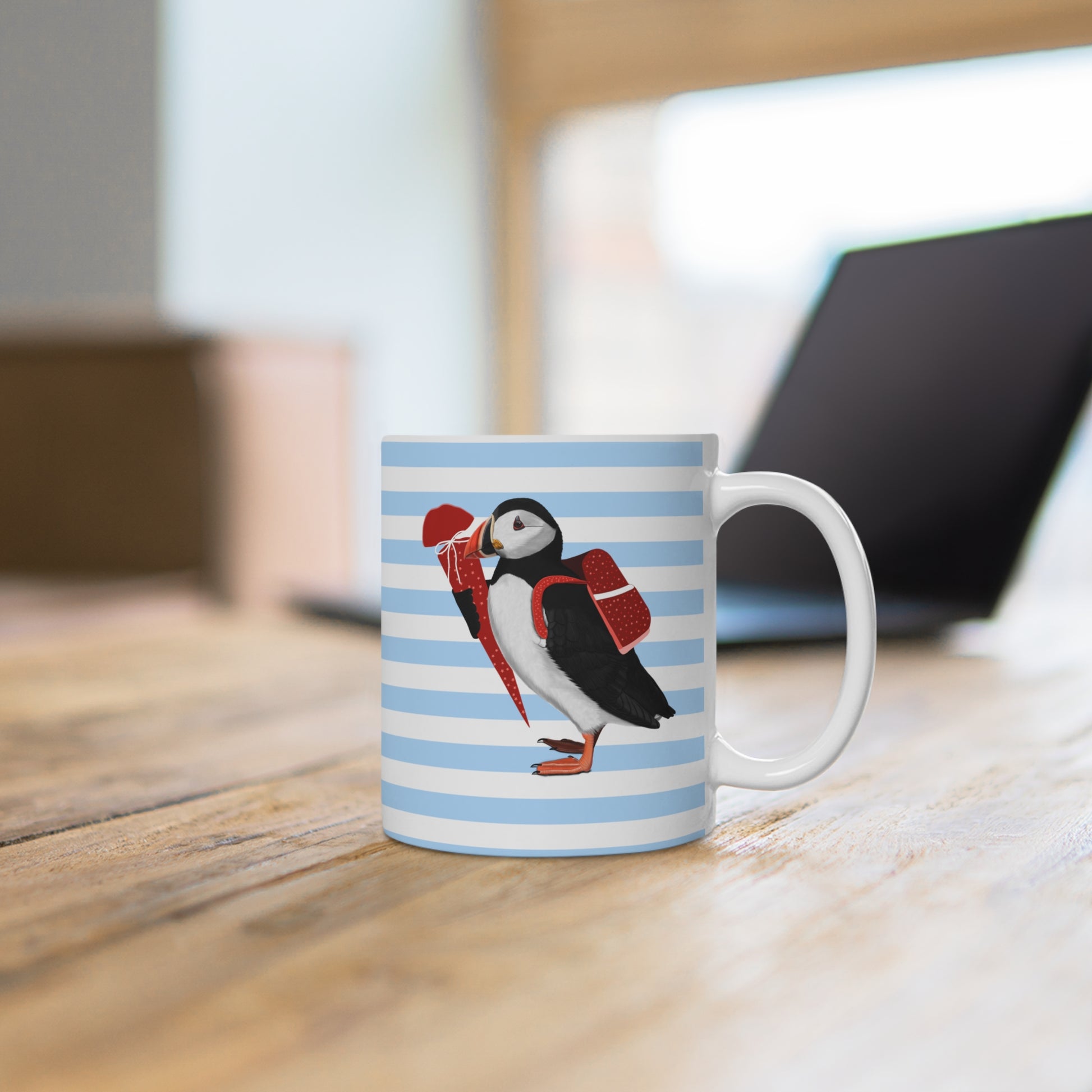 Unsere Papageitaucher Vogel Tasse ist perfekt für Tee und heiße Schokolade. Die klassische Tasse ist in den Größen 11 oz. (0,33l) und 15 oz. (0,44l) erhältlich und eignet sich hervorragend als Geschenk zur Einschulung für alle Vogelfreunde.