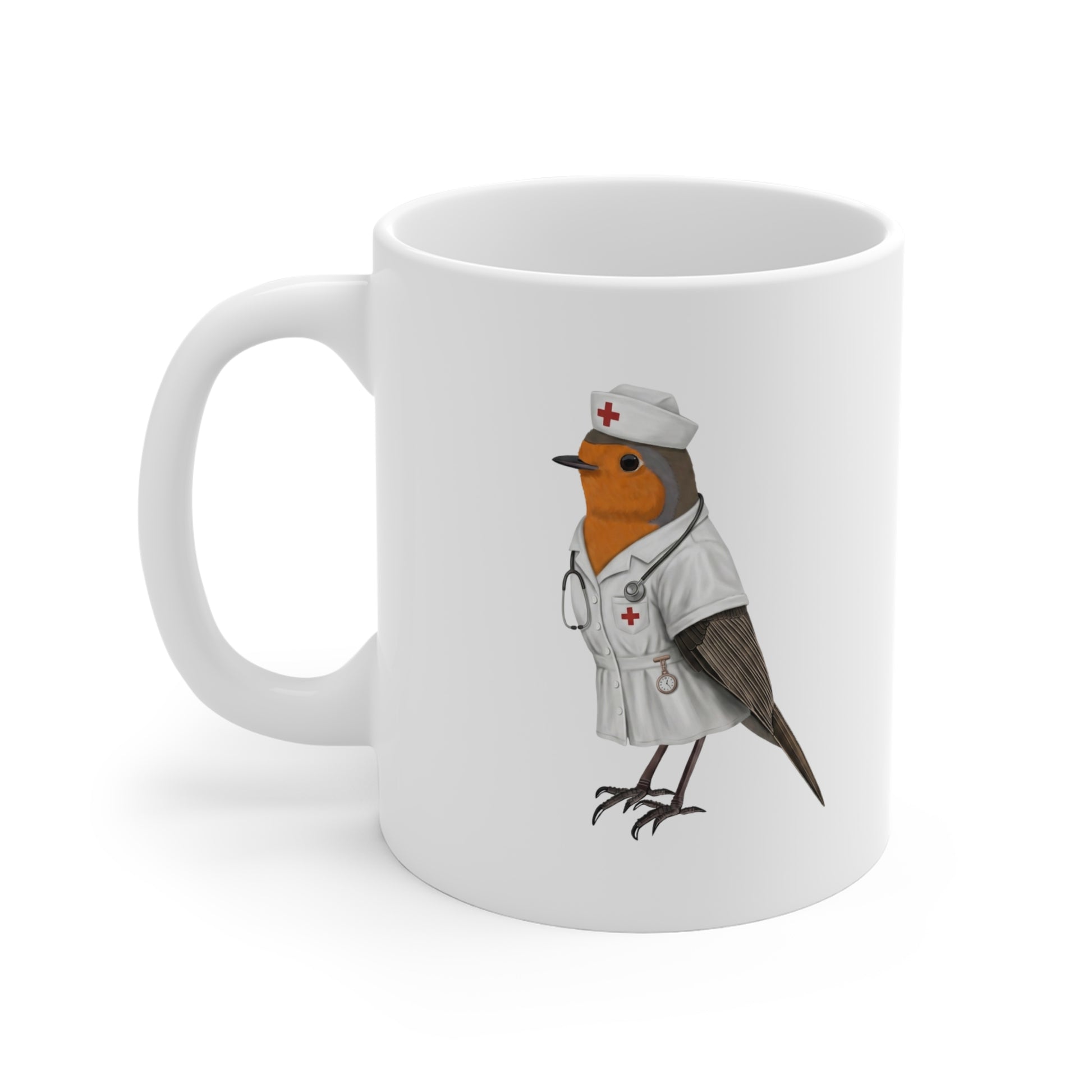 Rotkehlchen als Krankenschwester Tasse mit Vogelmotiv – Ideal für Kakao & Kaffee