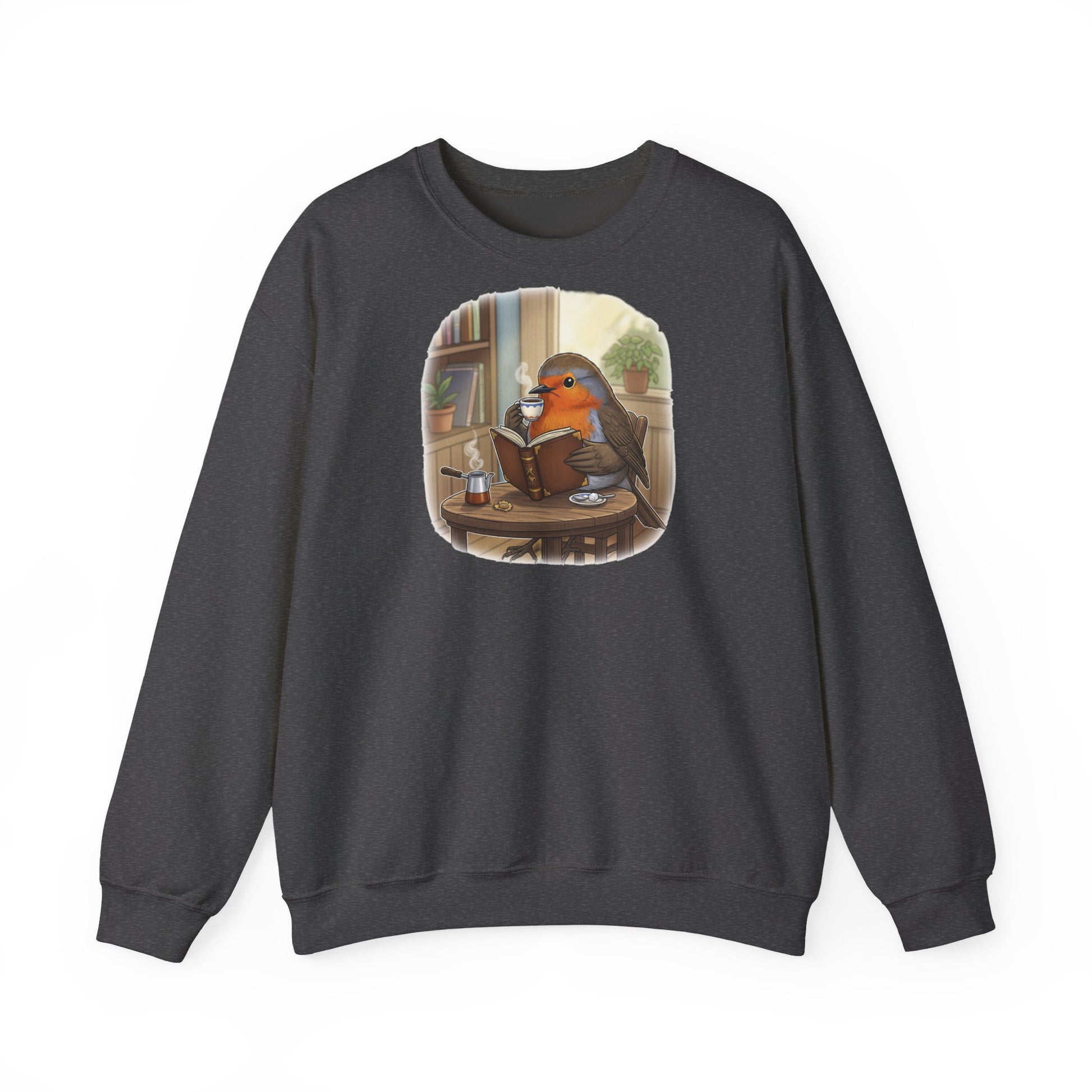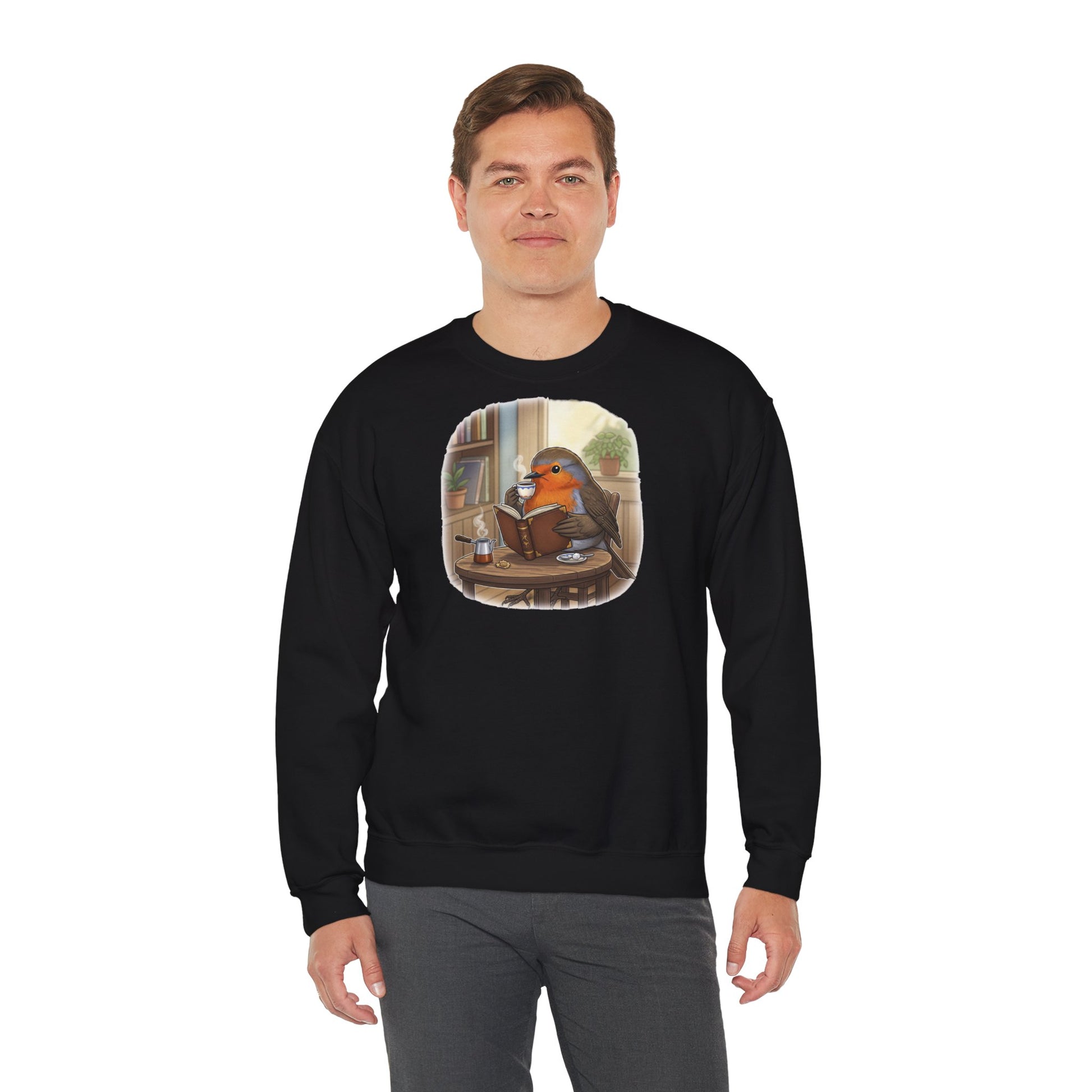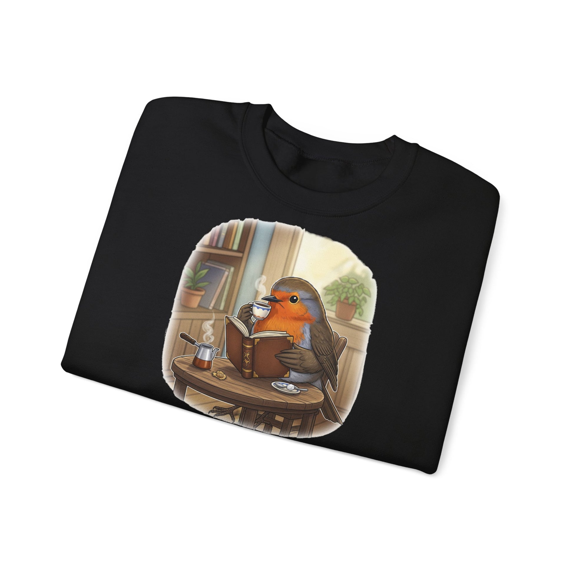 Rotkehlchen liest Bücher und trinkt Kaffee Vogel Sweatshirt für Vogelbeobachter