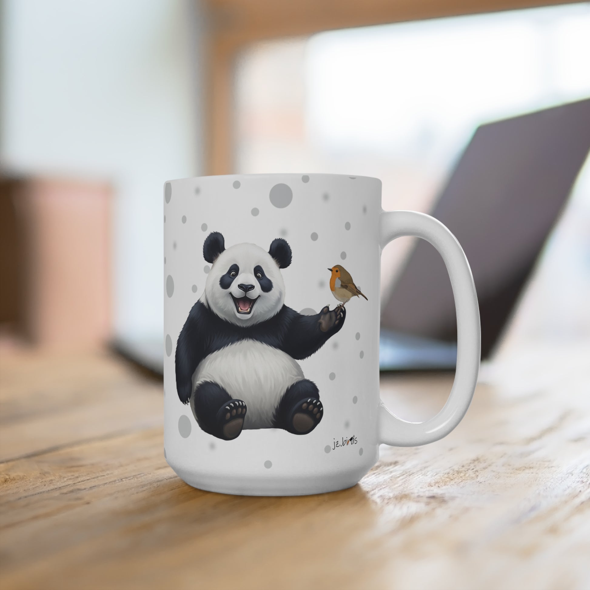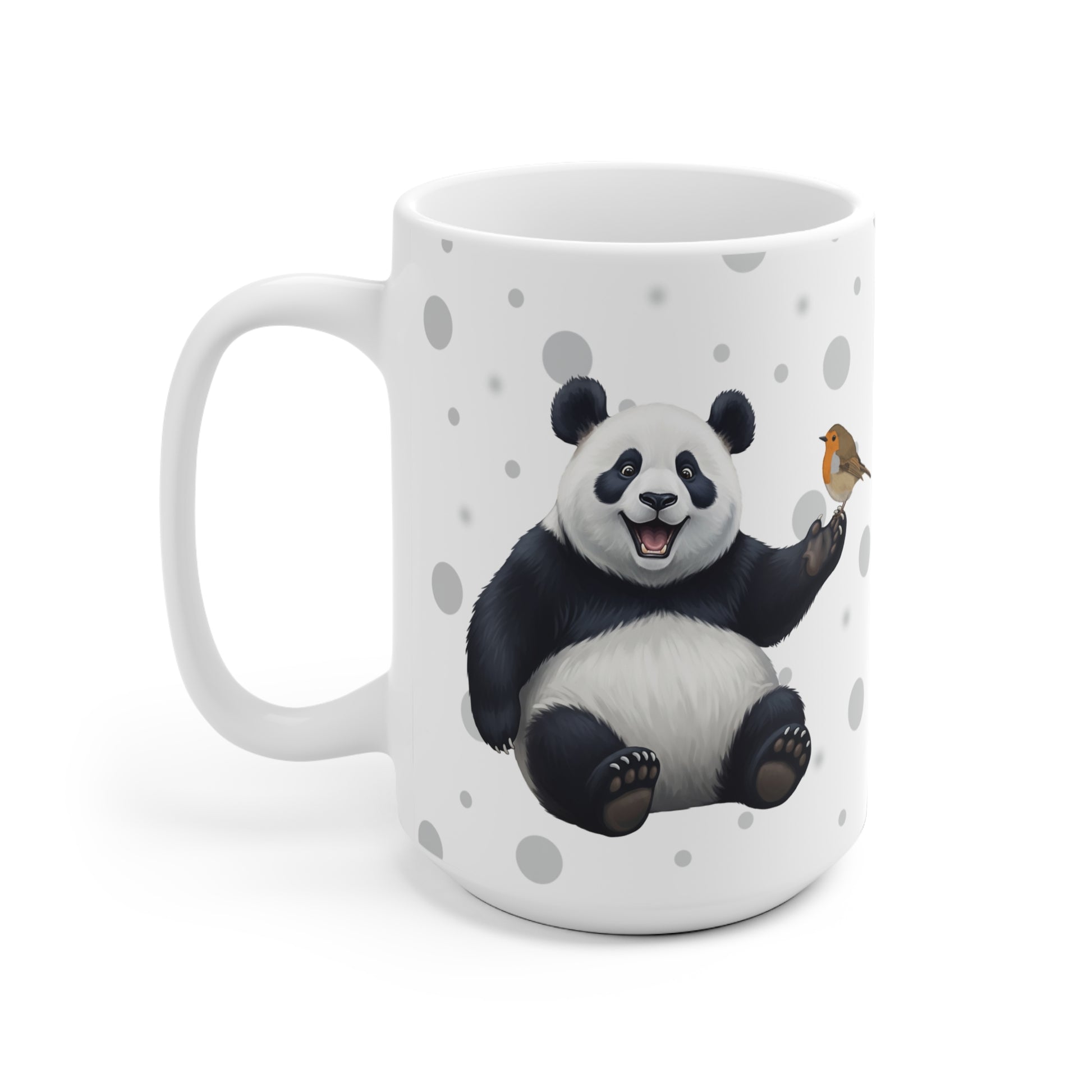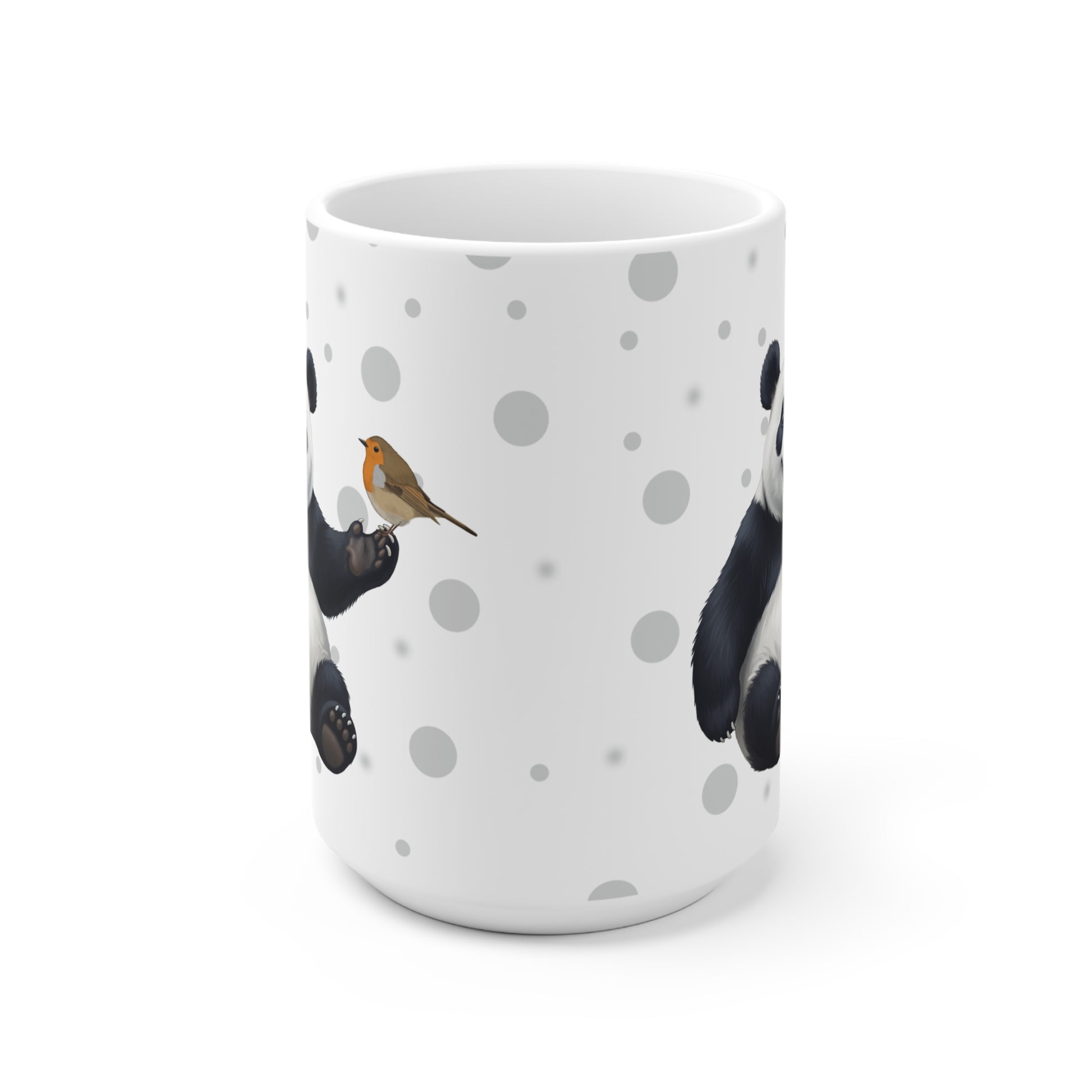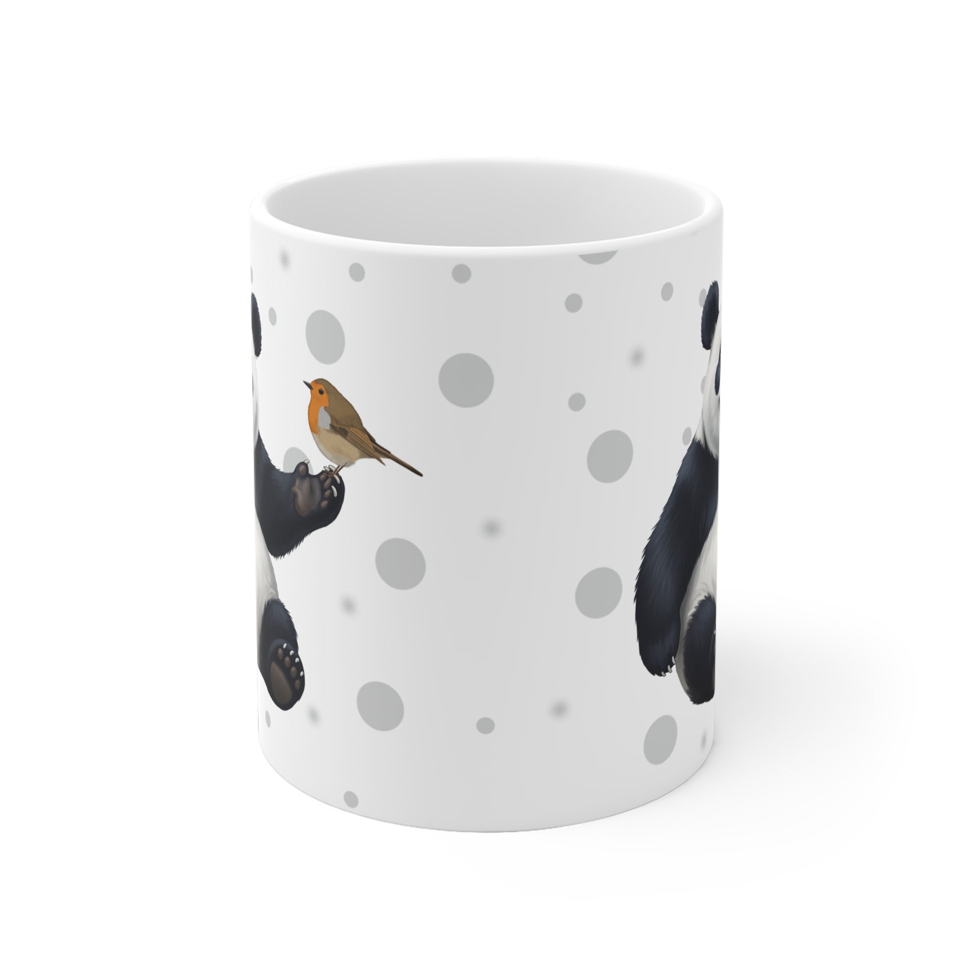 Unsere Rotkehlchen mit einem Panda Vogel Tiermotiv Tasse ist perfekt für Tee und heiße Schokolade. Die klassische Tasse ist in den Größen 11 oz. (0,33l) und 15 oz. (0,44l) erhältlich und eignet sich hervorragend als Geschenk für alle Vogelfreunde, Vogelbeobachter und Tierfreunde.