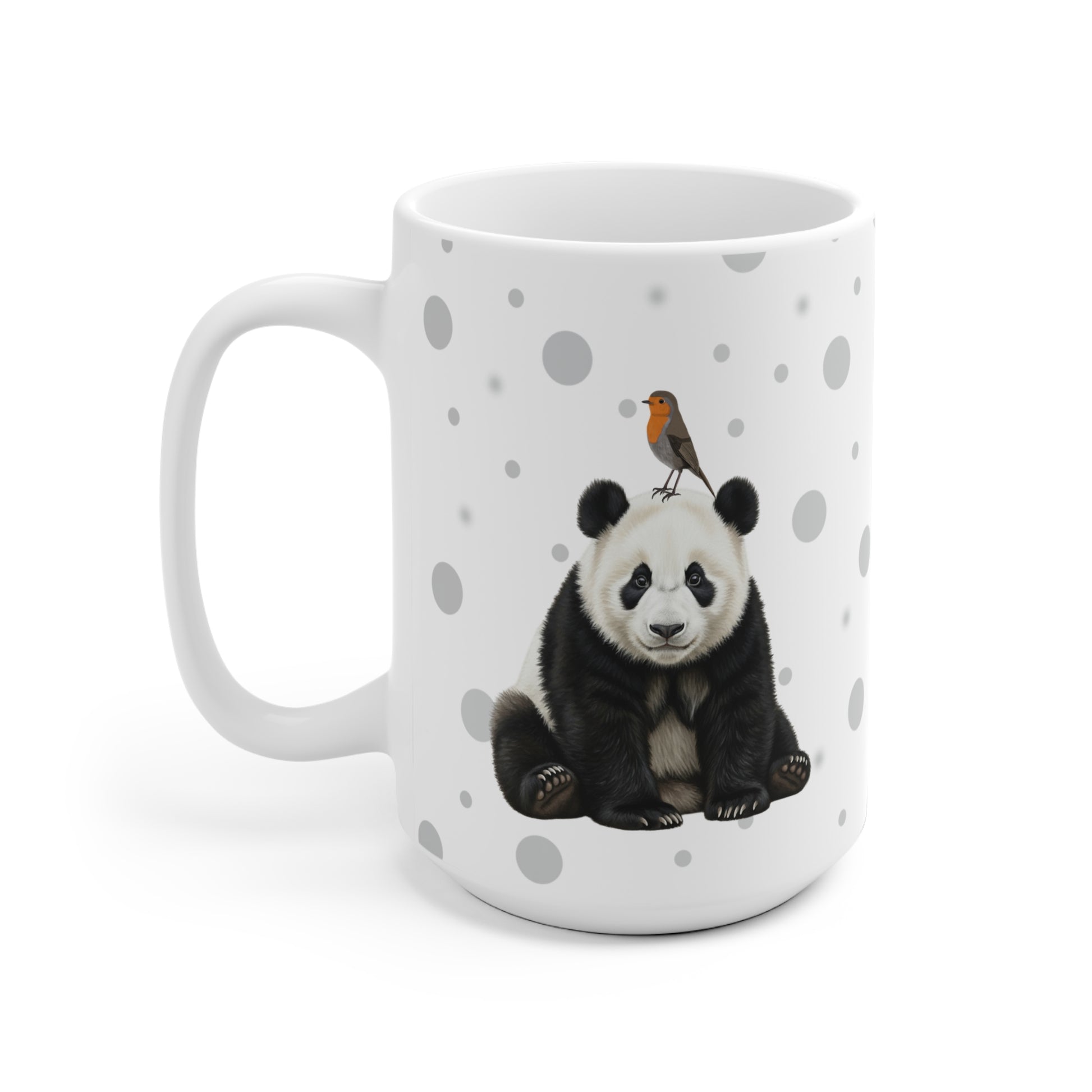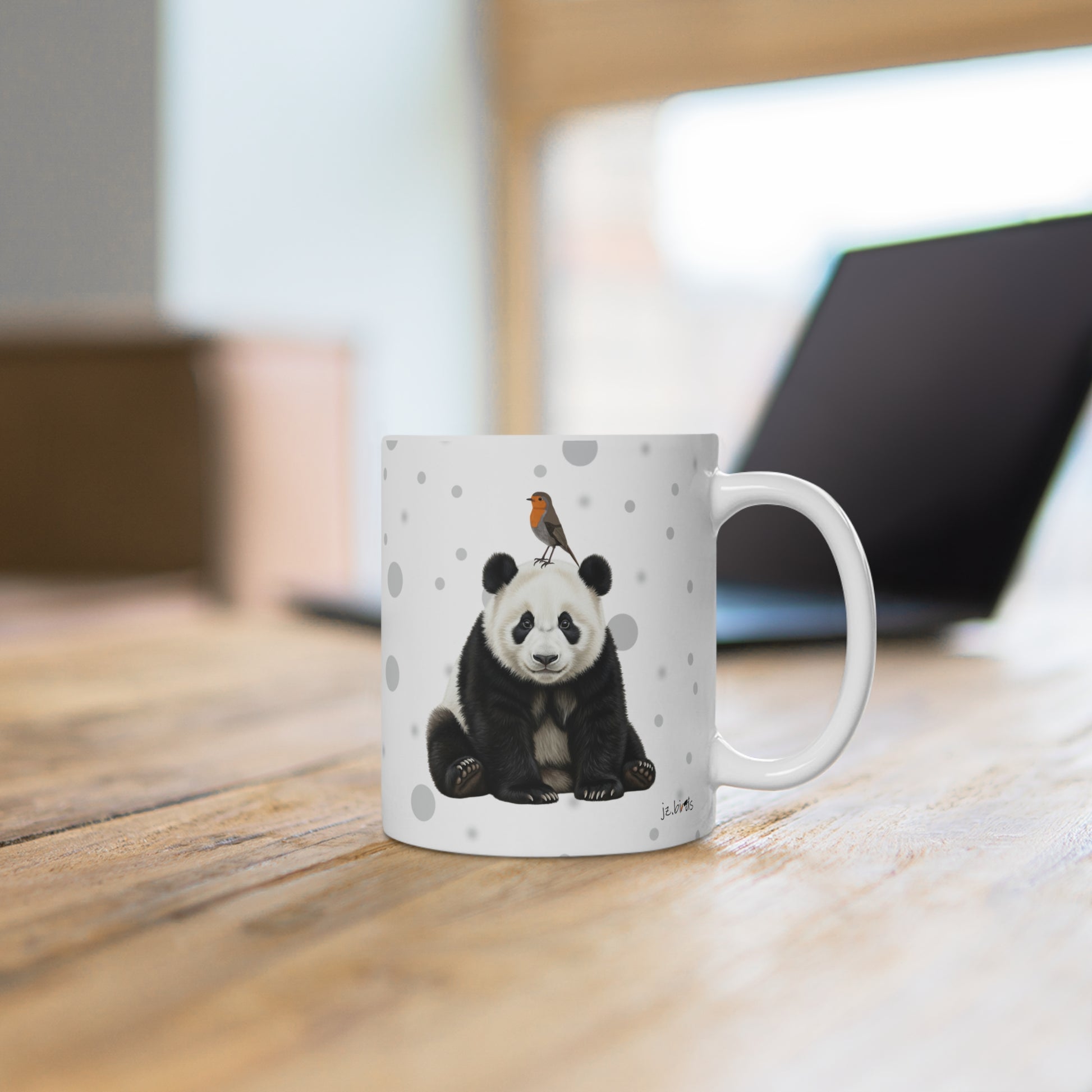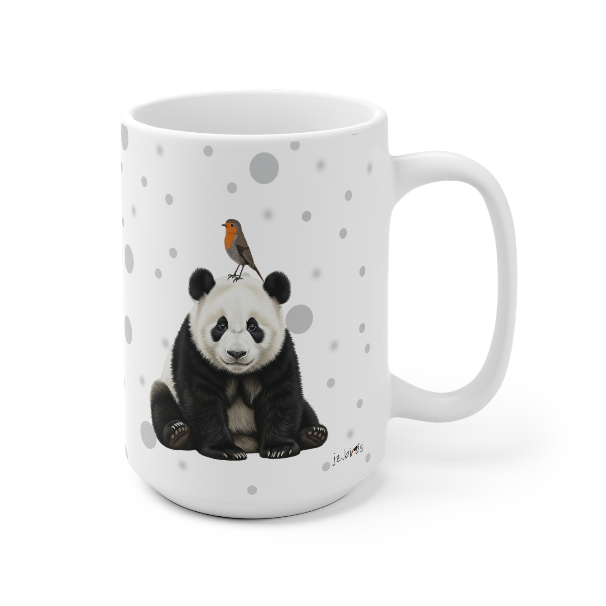 Unsere Rotkehlchen mit einem Panda Vogel Tiermotiv Tasse ist perfekt für Tee und heiße Schokolade. Die klassische Tasse ist in den Größen 11 oz. (0,33l) und 15 oz. (0,44l) erhältlich und eignet sich hervorragend als Geschenk für alle Vogelfreunde, Vogelbeobachter und Tierfreunde.