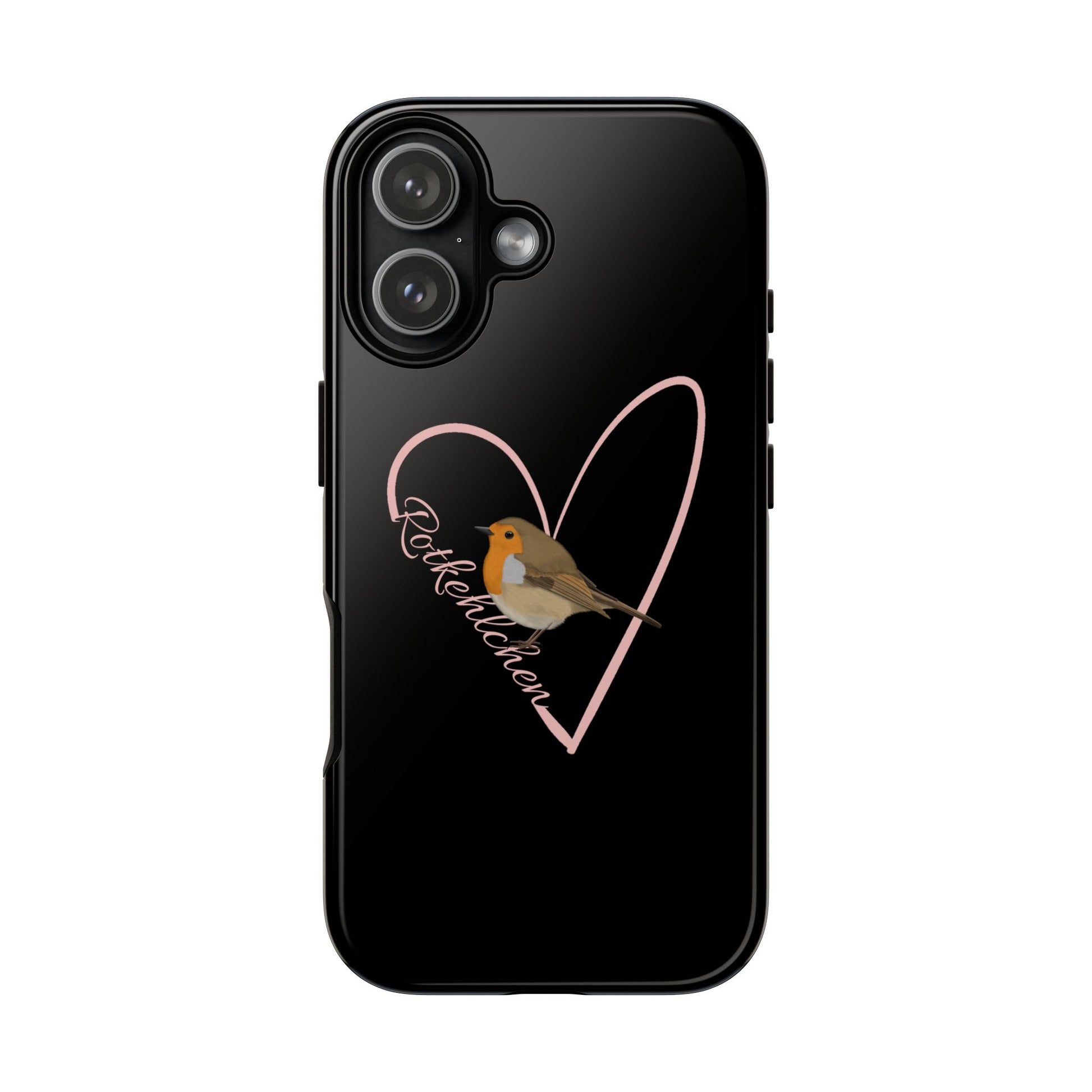 Rotkehlchen mit Herz Premium Handyhülle – Doppelt Geschützt & Rundum Bedruckt Schwarz