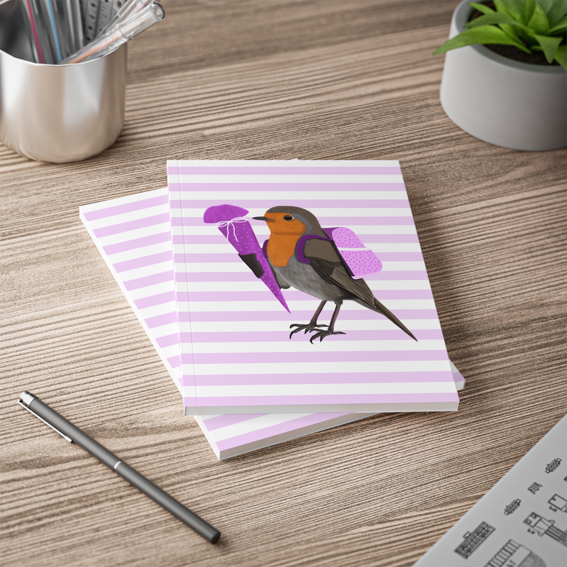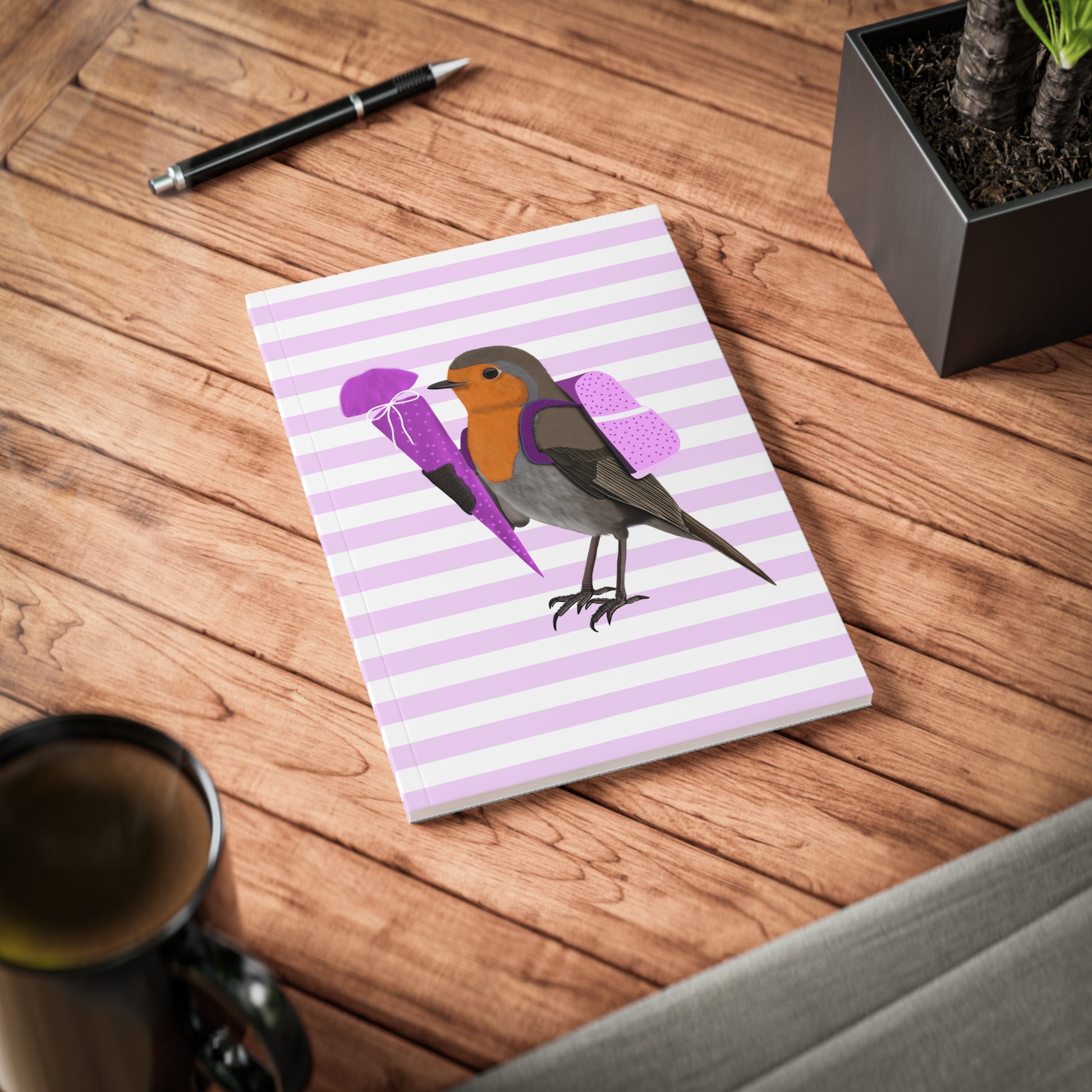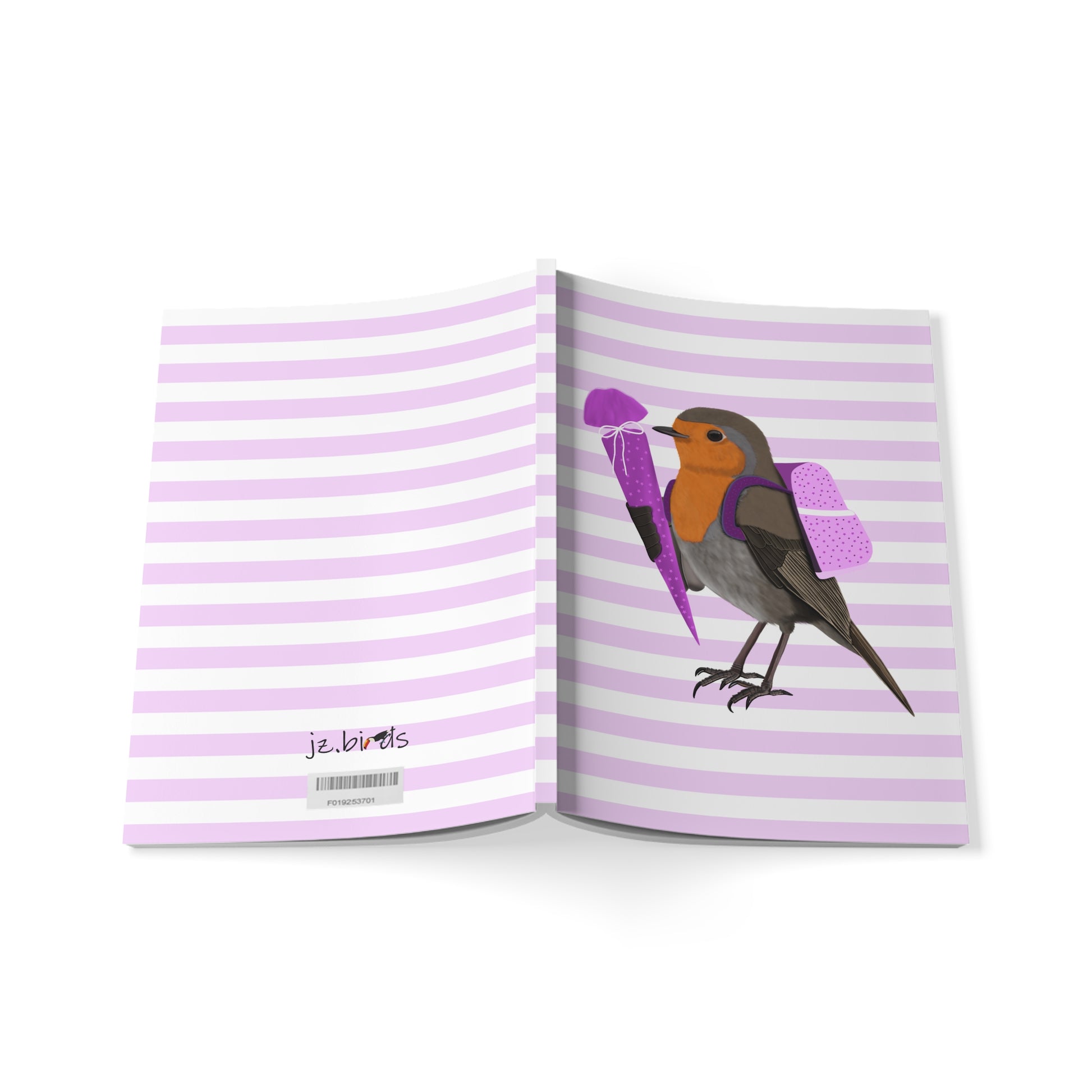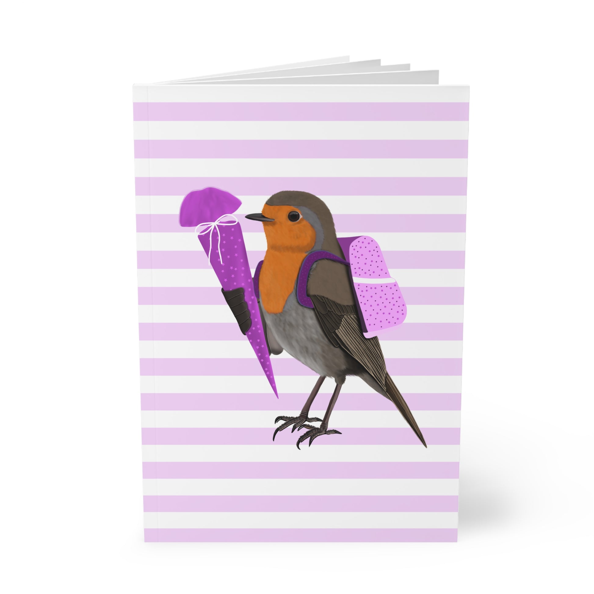 Rotkehlchen Notizbuch Geschenk zur Einschulung A5 Softcover 150 Seiten Liniert Rosa