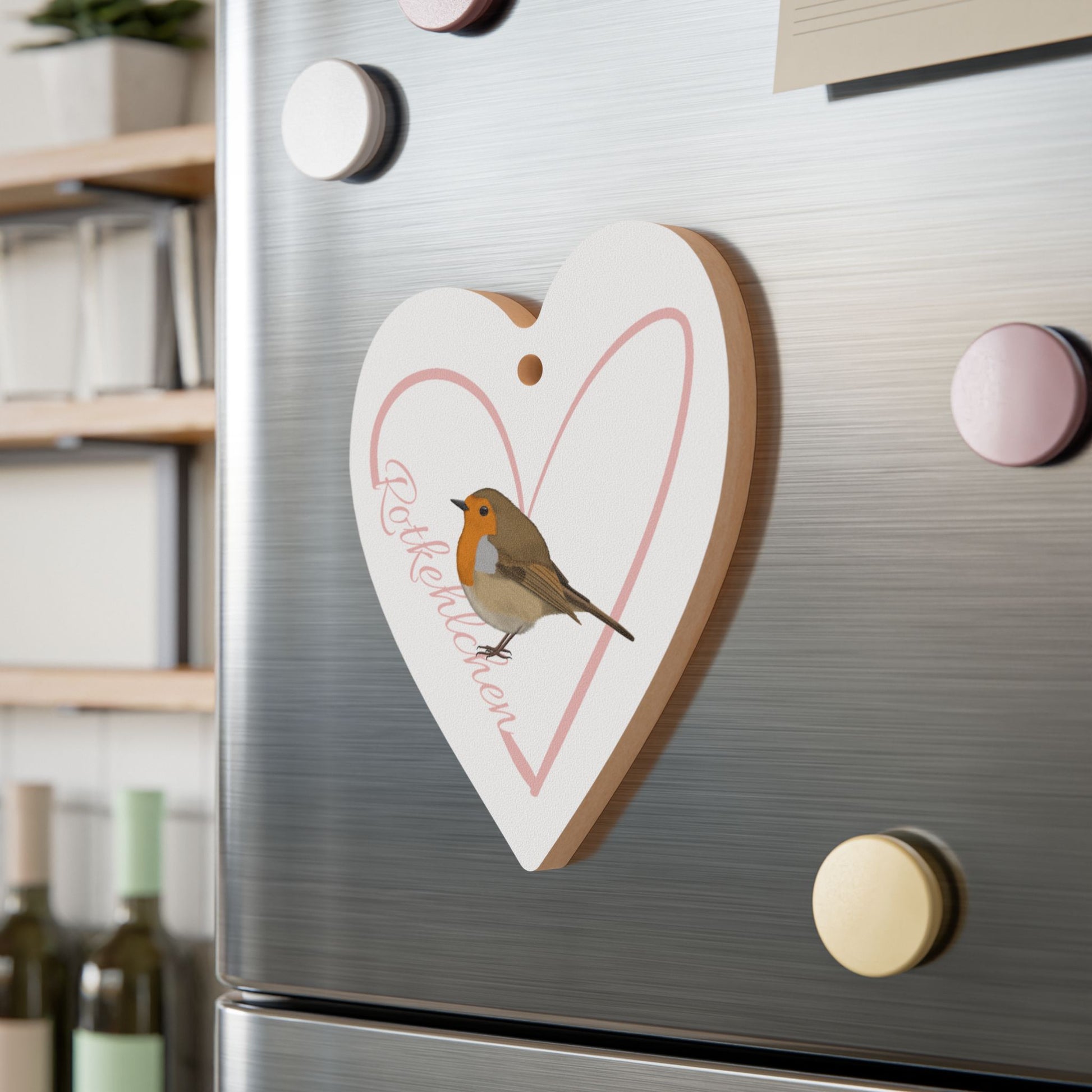 Rotkehlchen Ornament Herz aus Holz mit Vogelmotiv für Vogelfreunde
