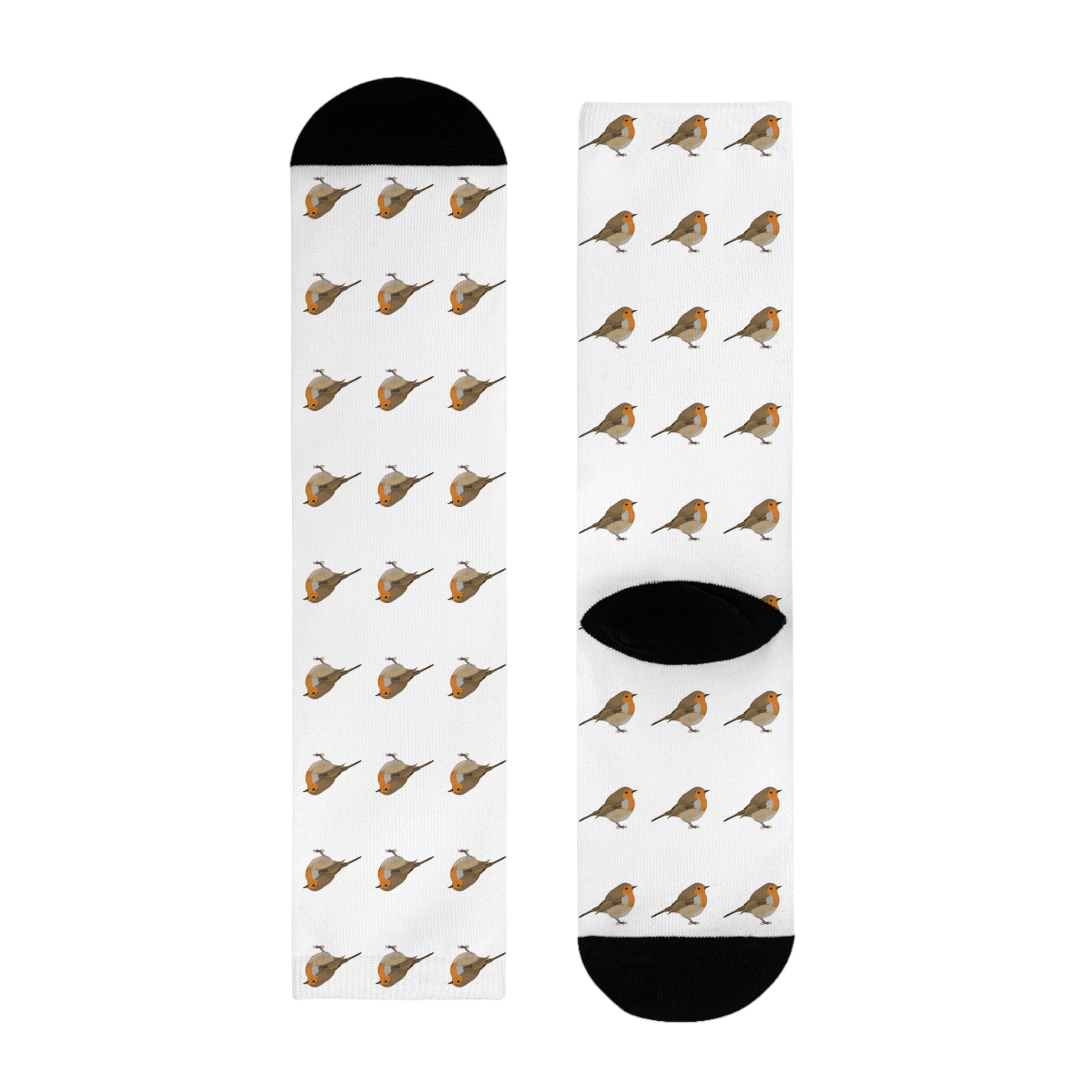 Rotkehlchen Socken für Vogelfreunde & Vogelbeobachter Weiß