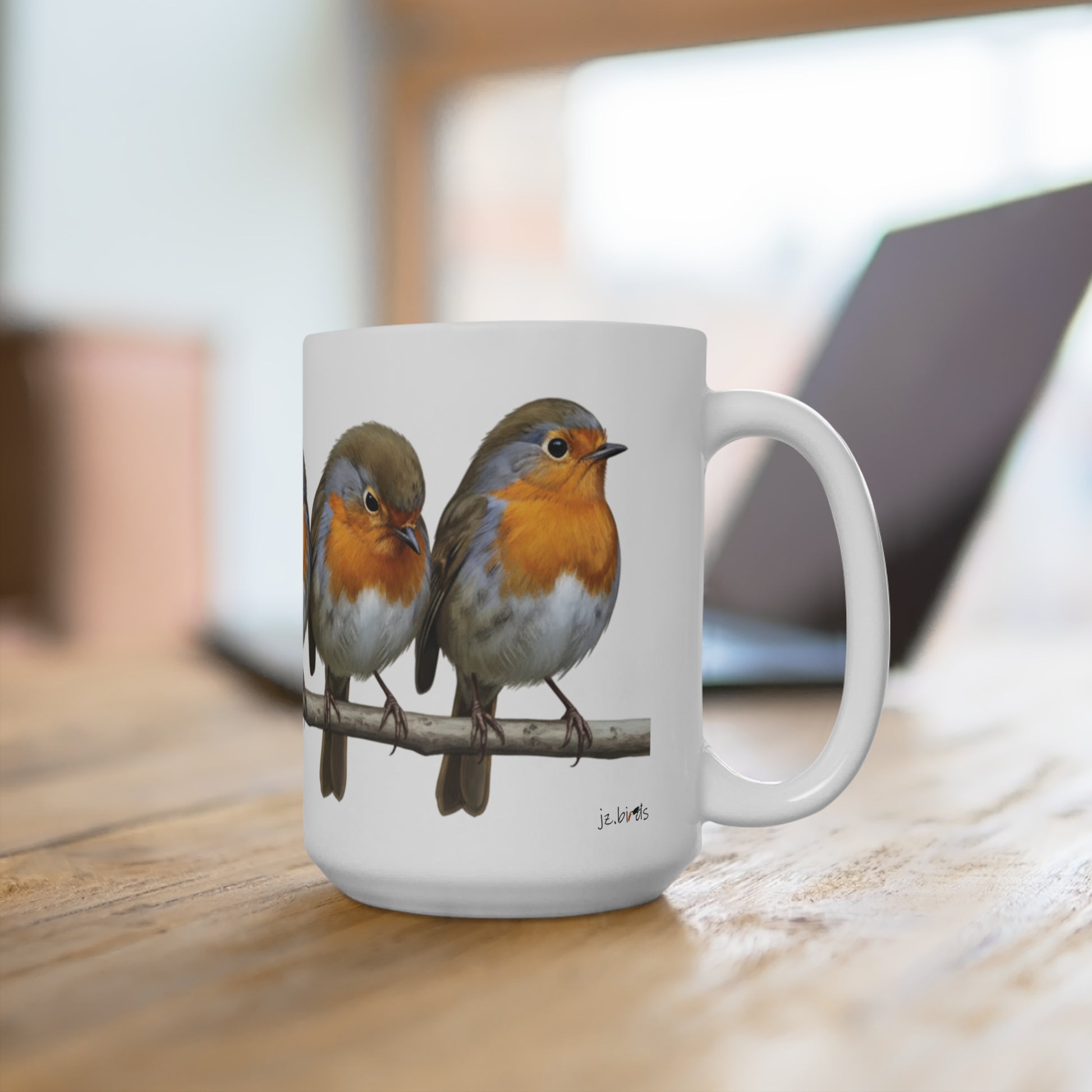 Unsere Rotkehlchen auf einem Ast Vogelmotiv Tasse ist perfekt für Tee und heiße Schokolade. Die klassische Keramik Tasse ist in den Größen 11 oz. (0,33l) und 15 oz. (0,44l) erhältlich und eignet sich hervorragend als Geschenk für alle Vogelfreunde, Vogelbeobachter und Tierfreunde.