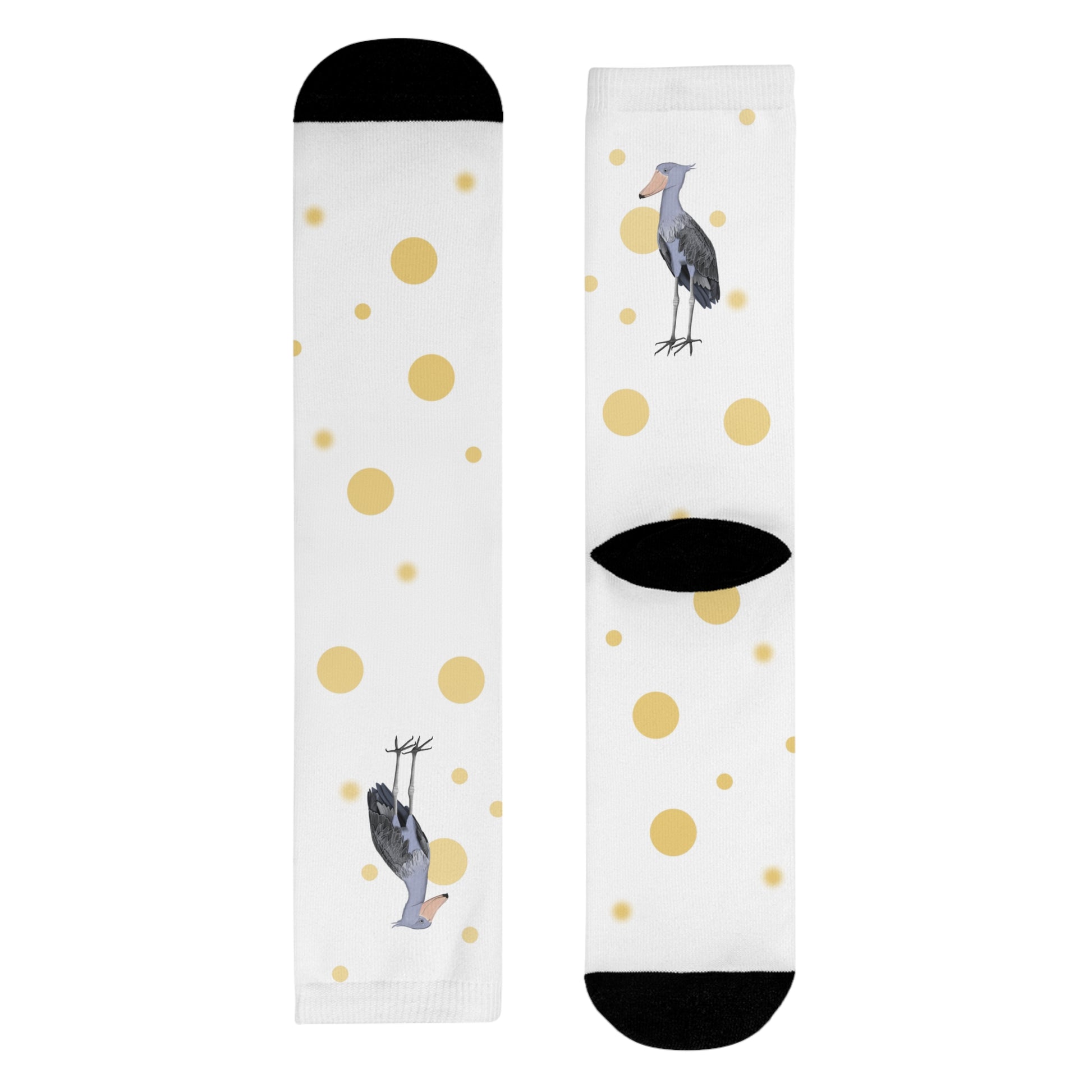 Schuhschnabel Vogel Socken mit Goldenen Punkten für Vogelfreunde & Vogelbeobachter Weiß