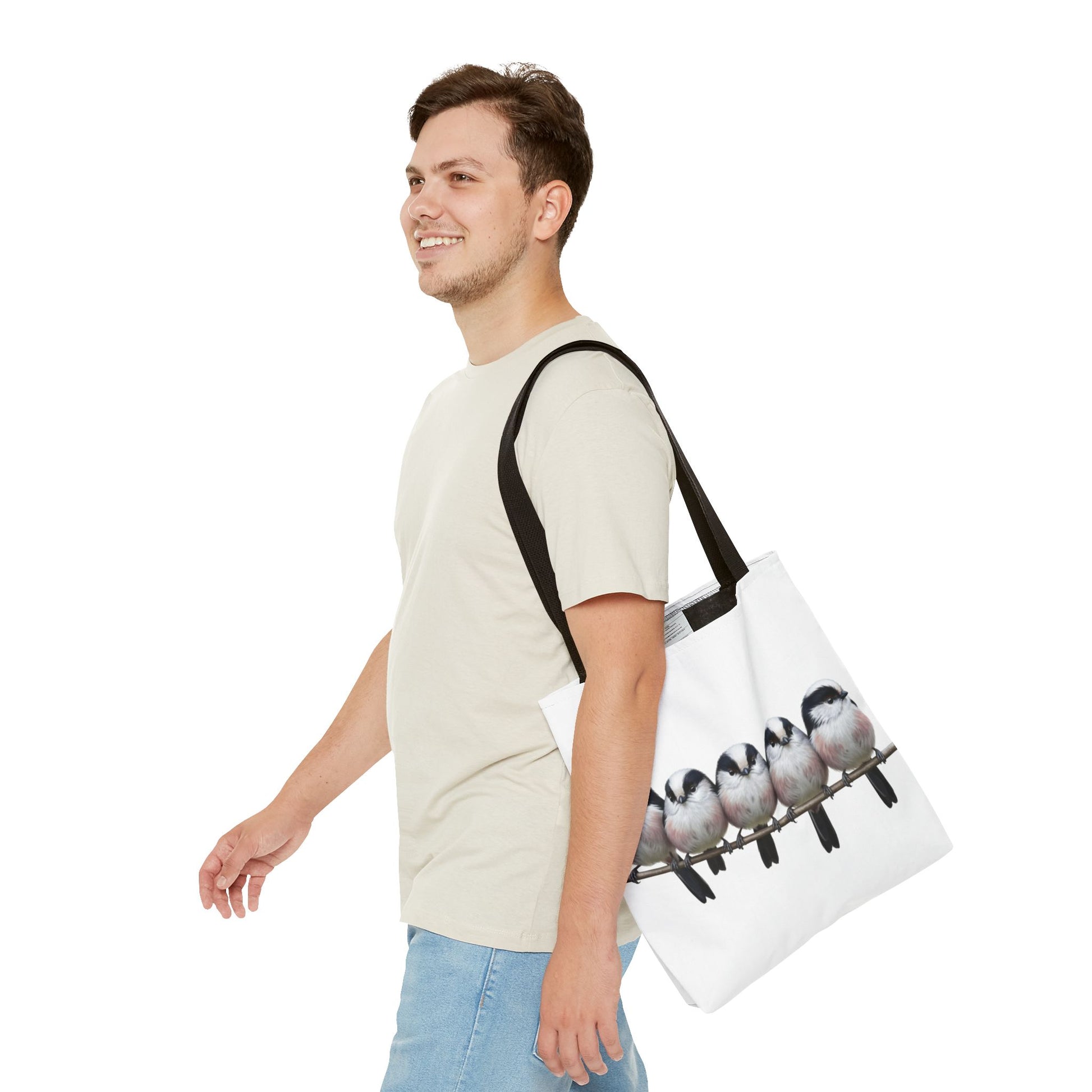 Schwanzmeisen Tragetasche 40x40cm Vogel Tasche Weiß für Vogelbeobachter