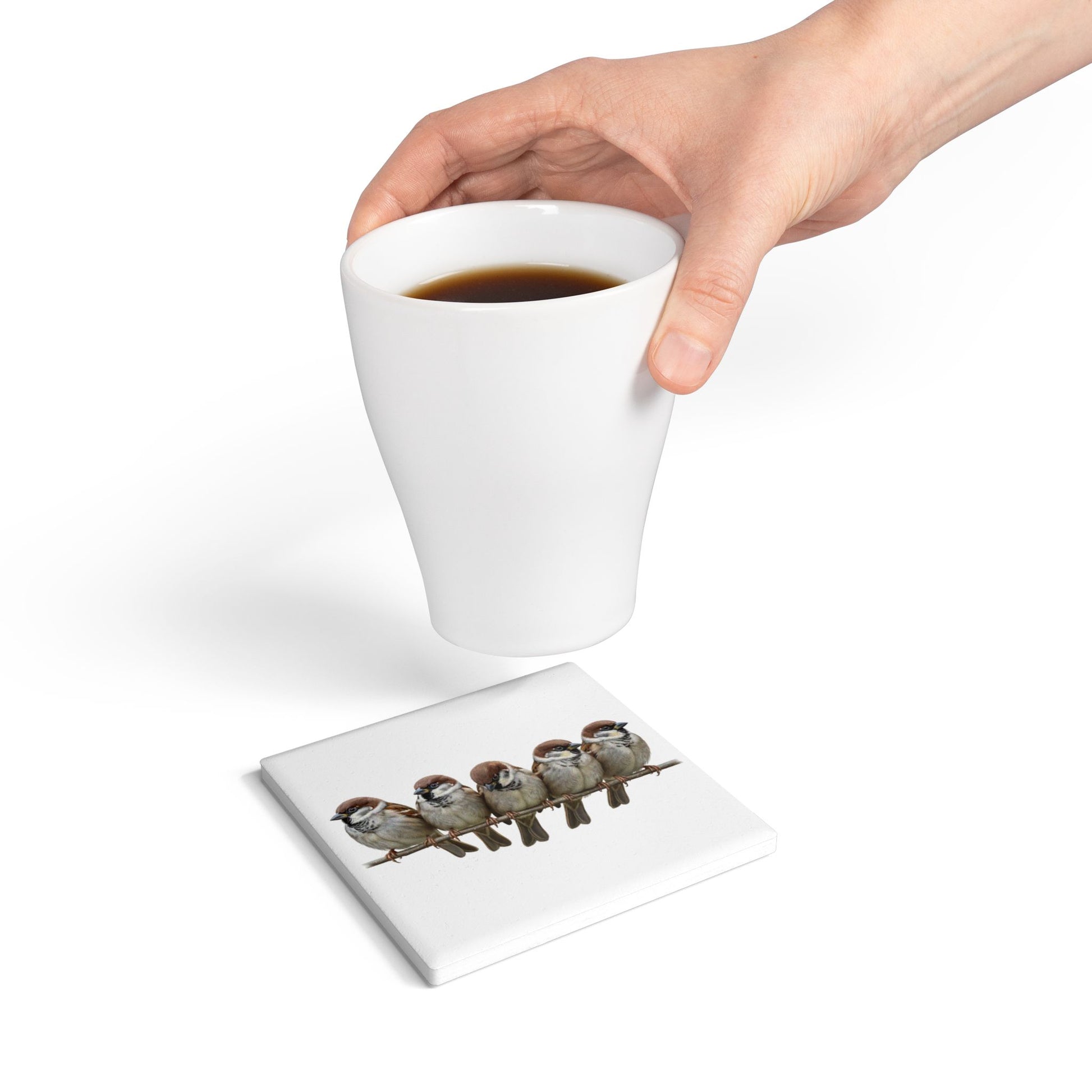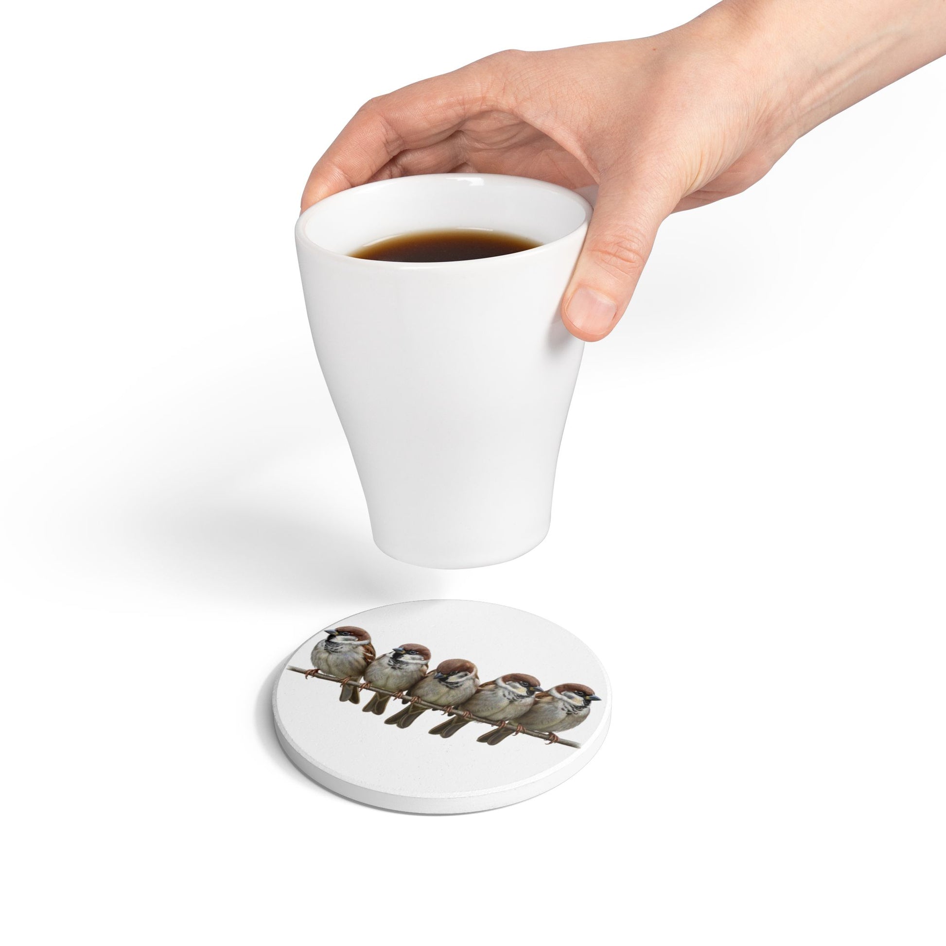 Mach’s dir gemütlich: Deine neuen Spatzen Keramik-Untersetzer mit Vogelmotiv!