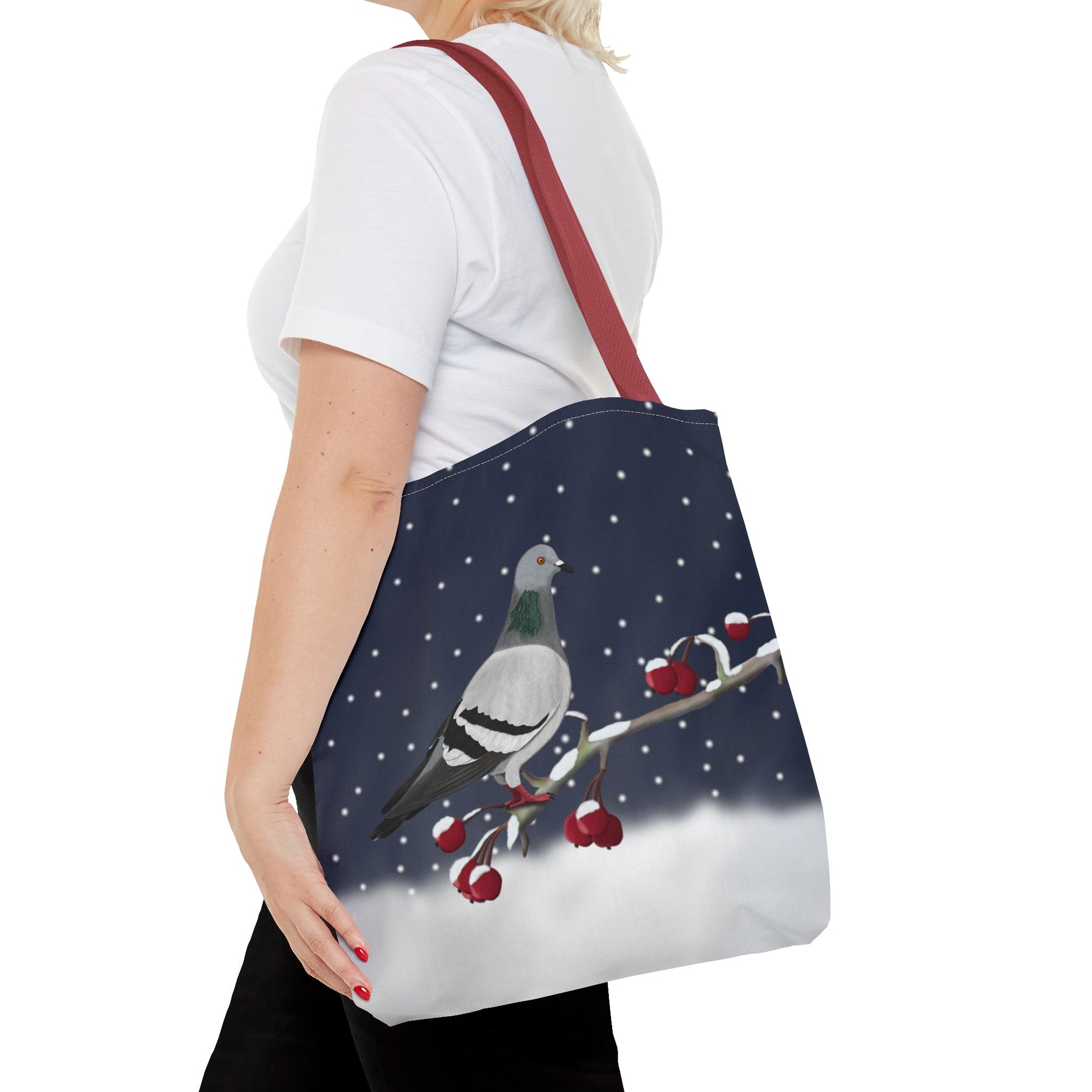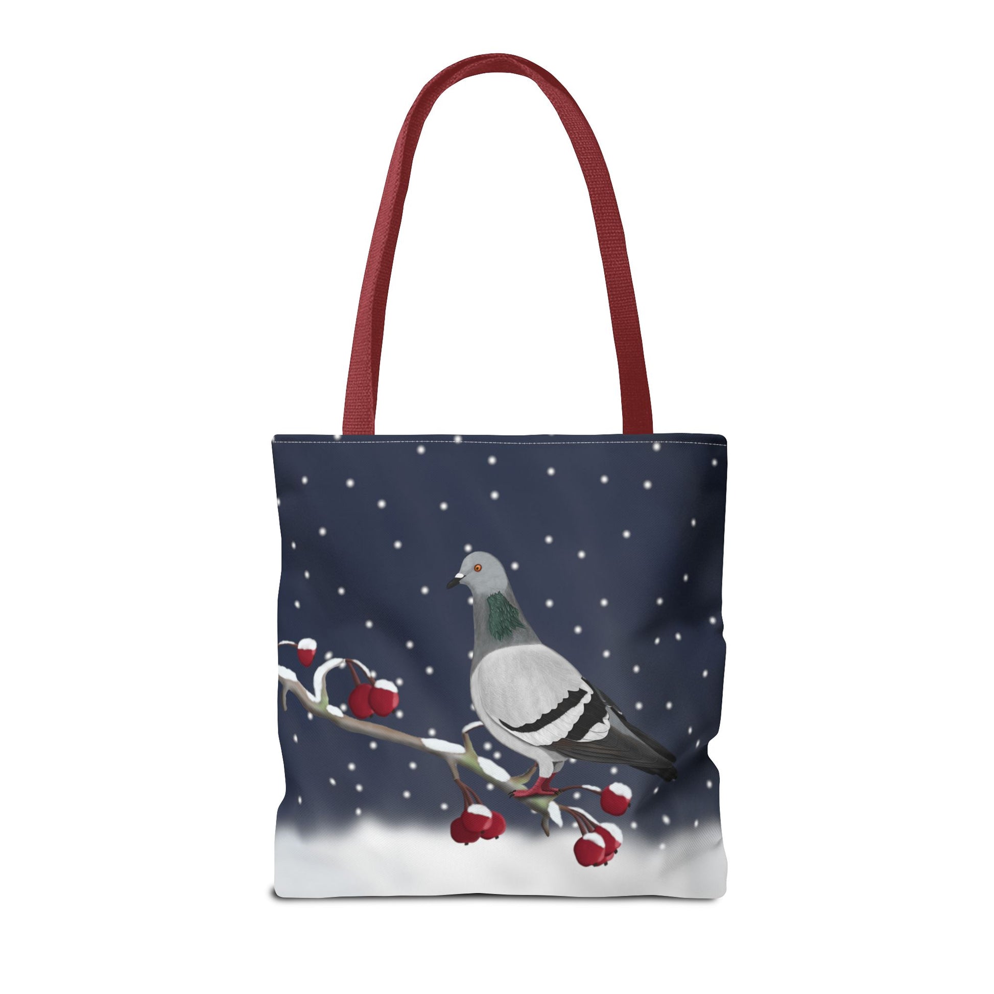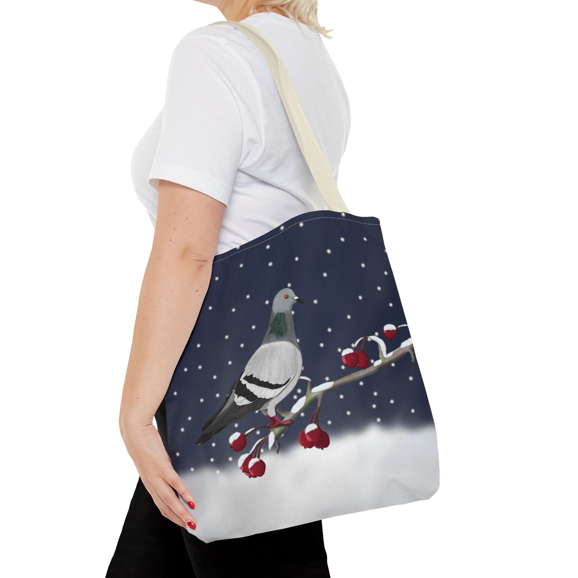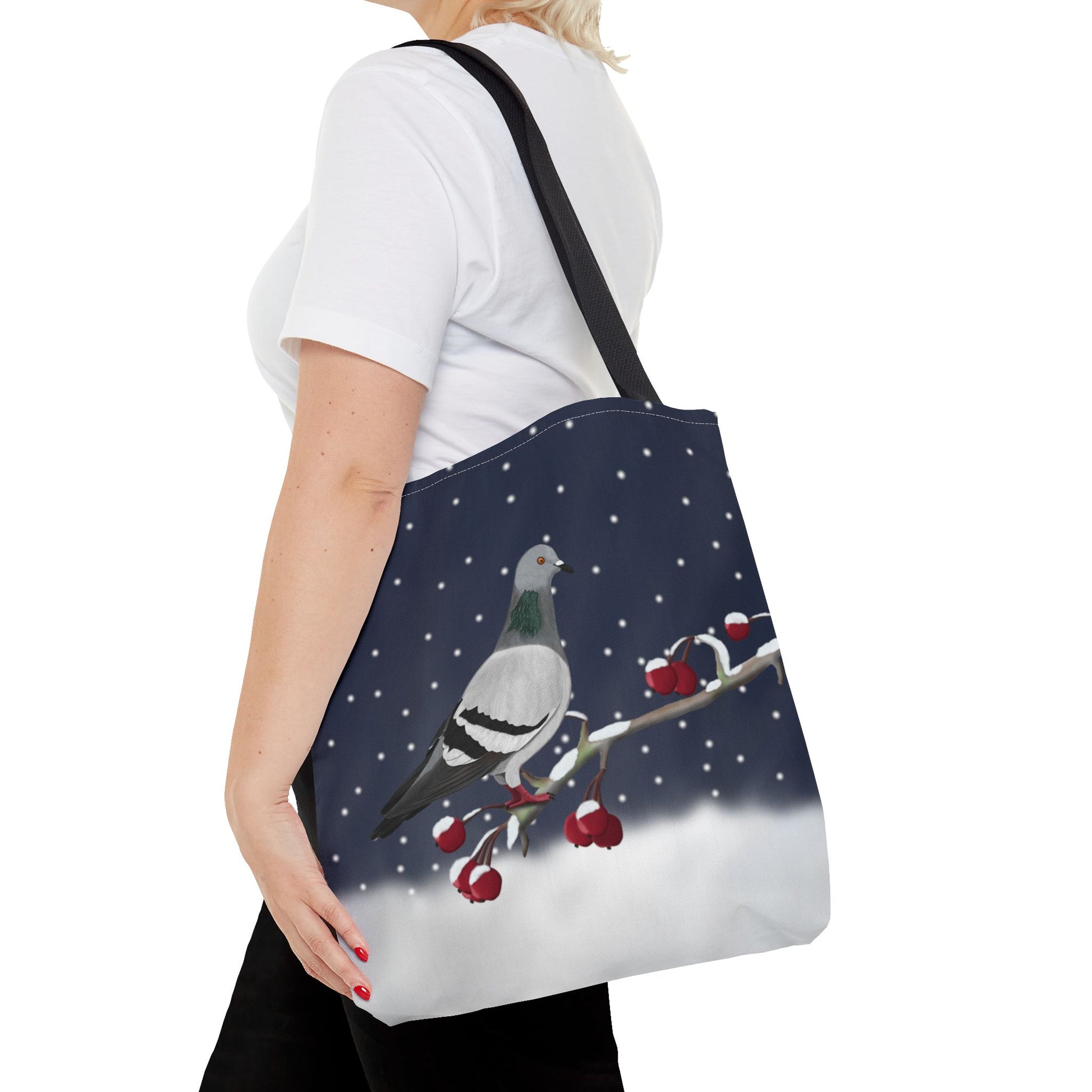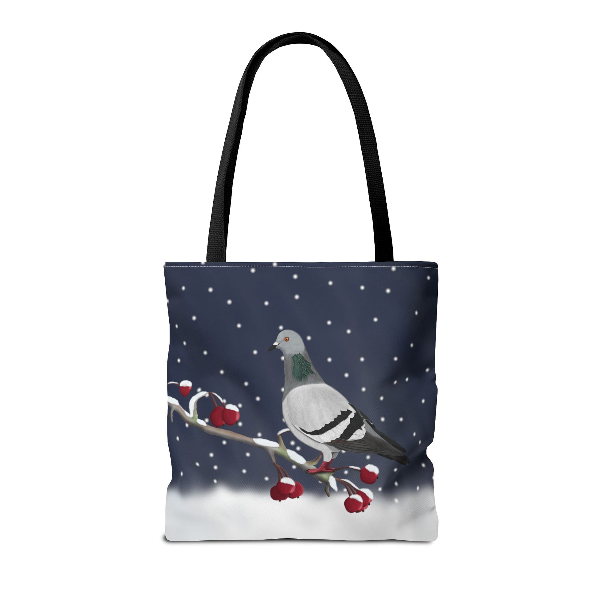 Taube auf einem Ast im Schnee Vogel Tragetasche