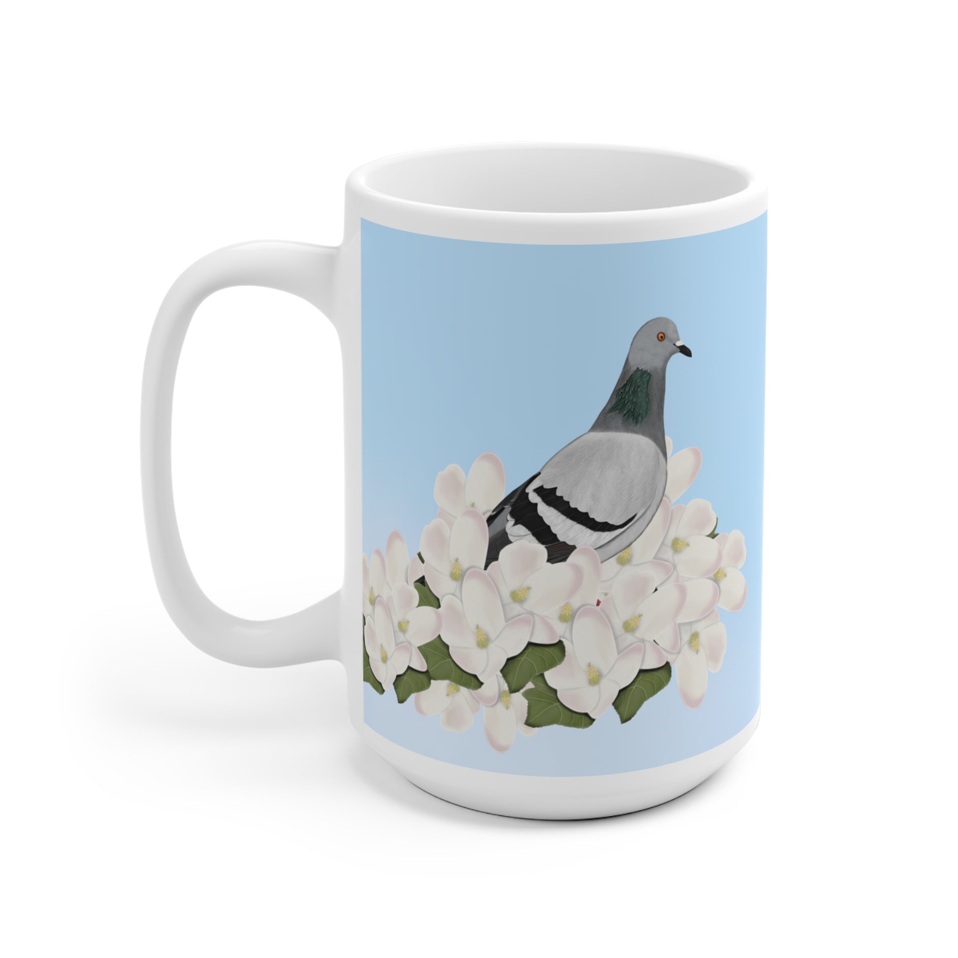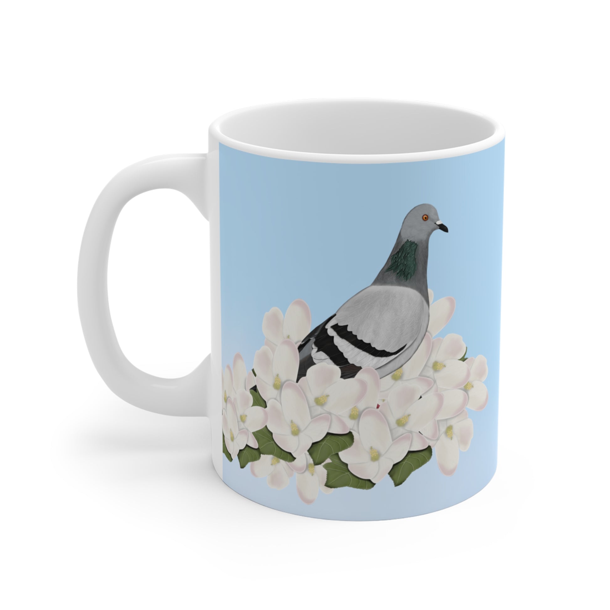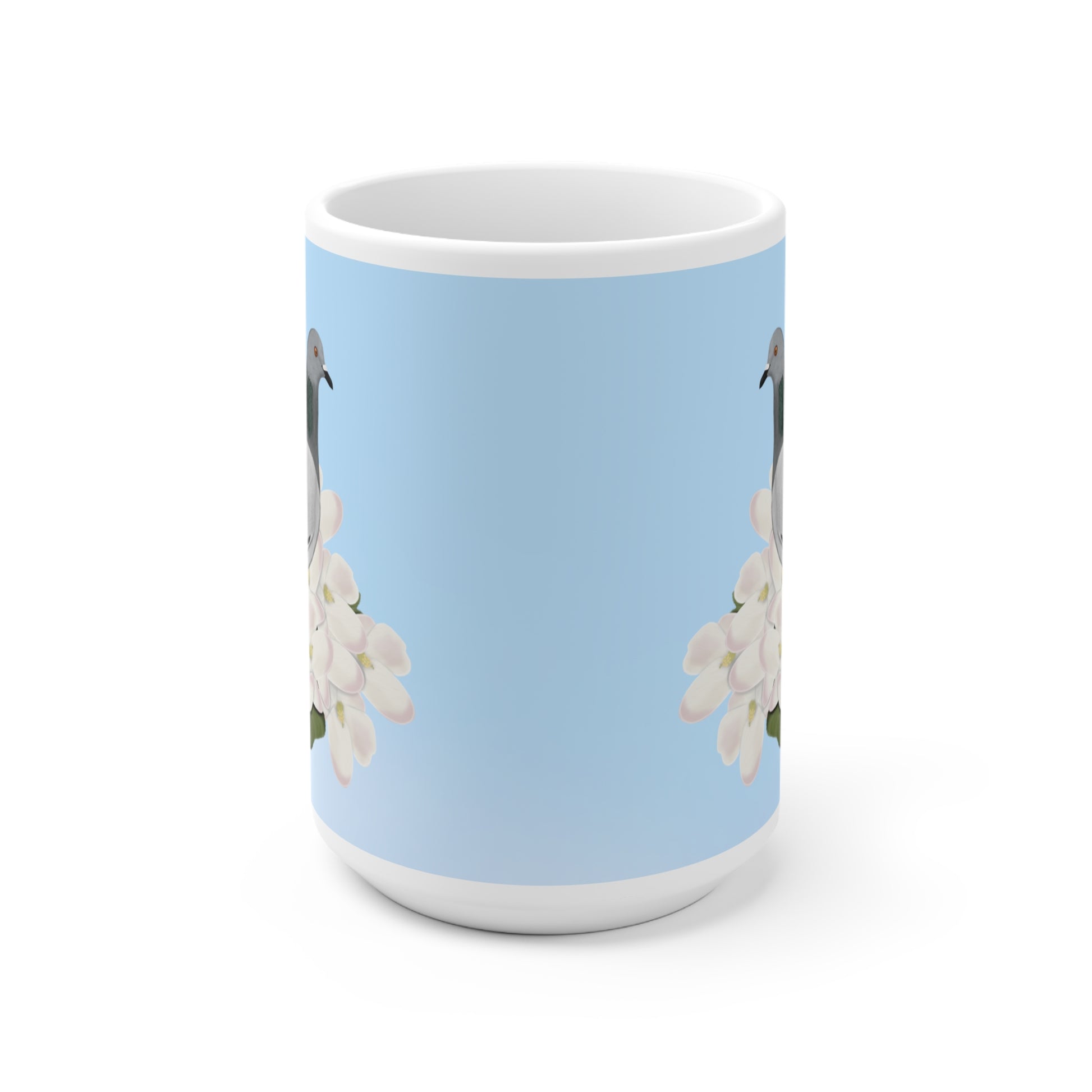 Unsere Taube mit Apfelblüten Vogel Tasse ist perfekt für Tee und heiße Schokolade. Die klassische Tasse ist in den Größen 11 oz. (0,33l) und 15 oz. (0,44l) erhältlich und eignet sich hervorragend als Geschenk für alle Vogelfreunde und Vogelbeobachter.
