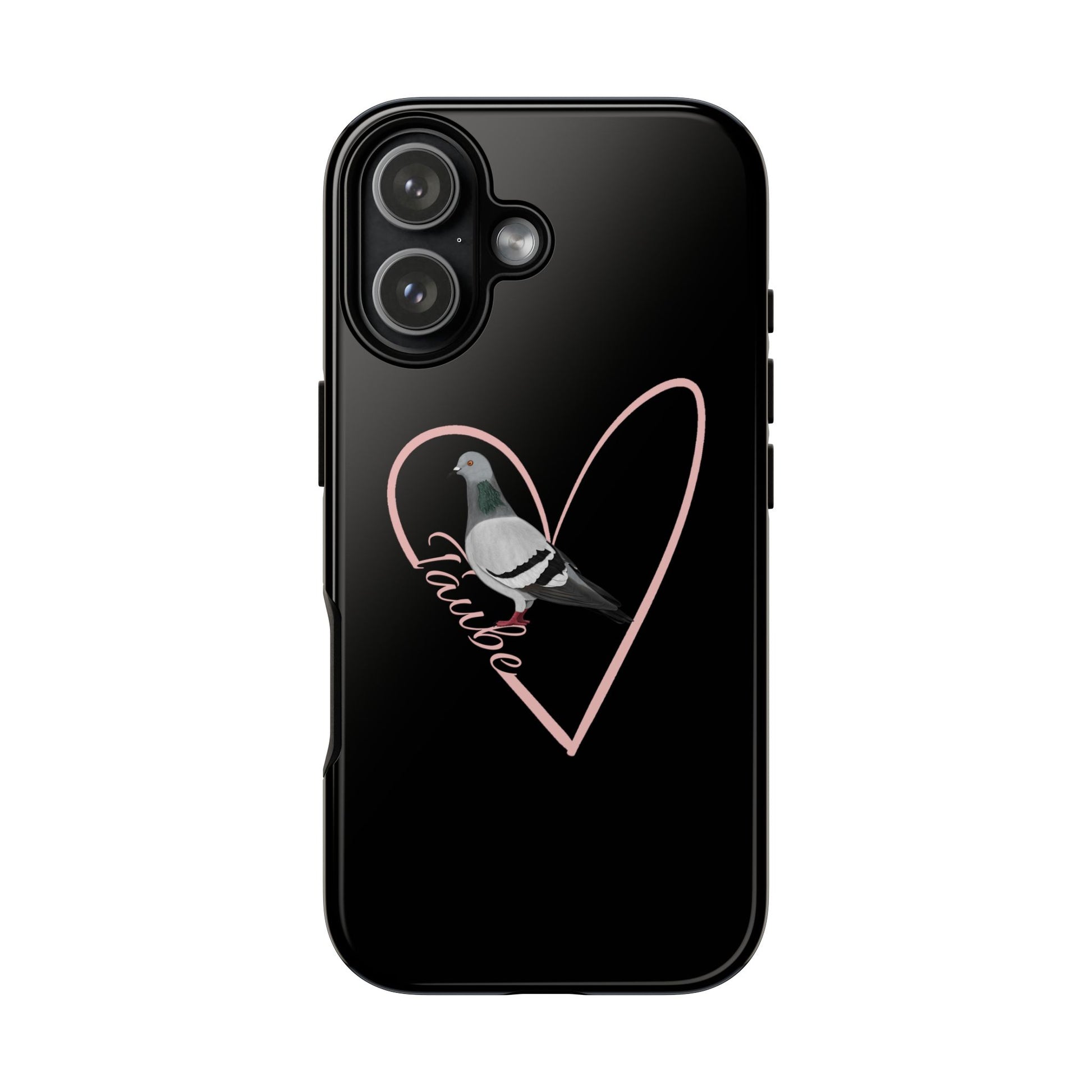 Taube mit Herz Premium Handyhülle – Doppelt Geschützt & Rundum Bedruckt Schwarz